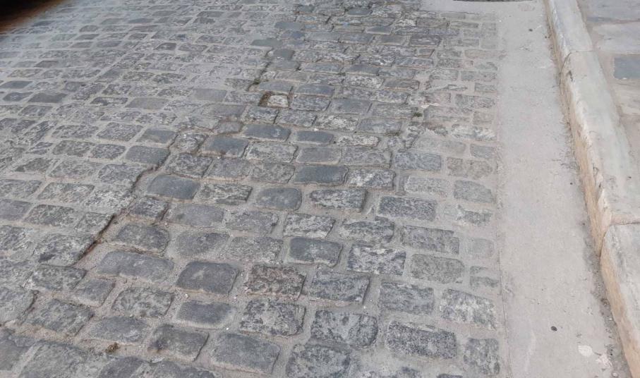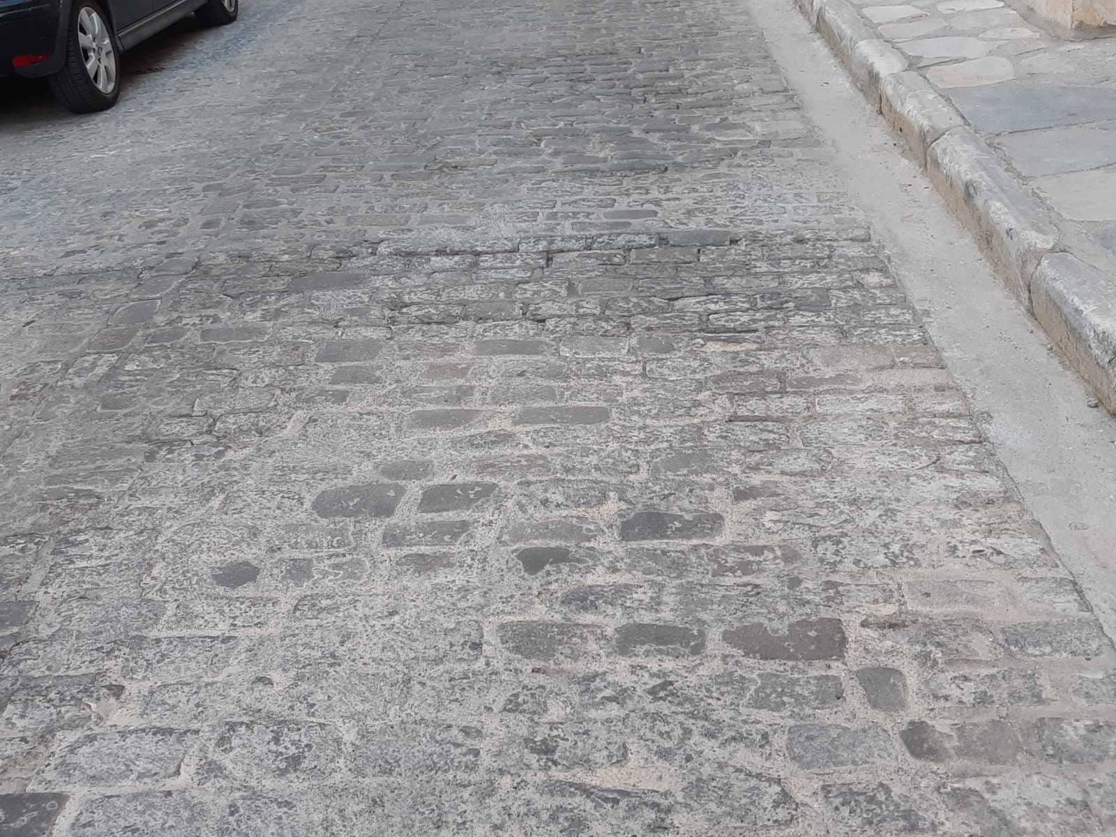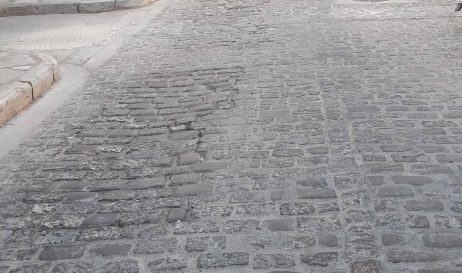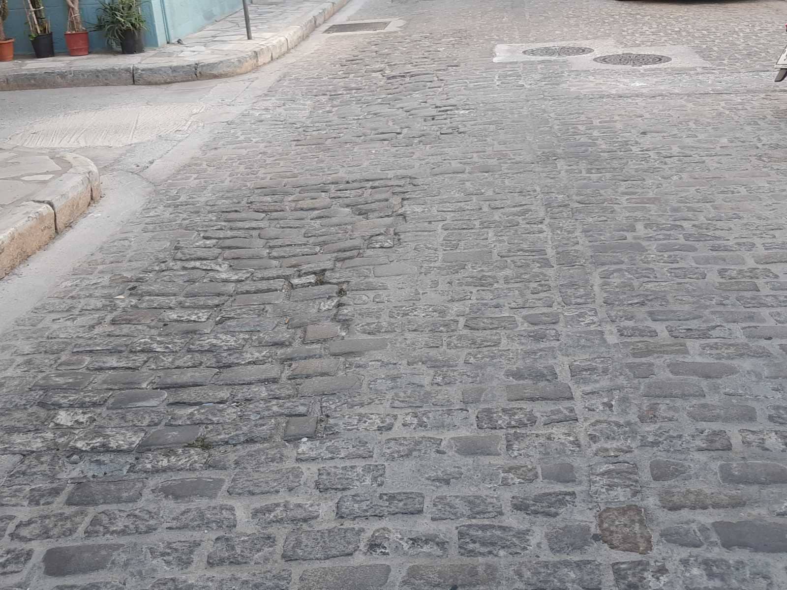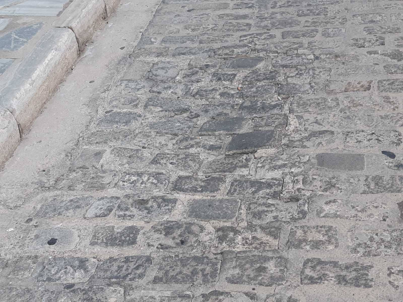 Σε κακή κατάσταση παραμένει ο γρανιτένιος δρόμος έξω από τον παιδικό σταθμό του Δήμου Σύρου Ερμούπολης, δίπλα στο 4ο Δημοτικό σχολείο, με αρκετά σημεία του να έχουν “φουσκώσει” και άλλα να έχουν υποχωρήσει, δημιουργώντας μία επικίνδυνη κατάσταση για τους πεζούς, οι οποίοι, λόγω των στενών και κακοδιατηρημένων πεζοδρομίων, συχνά αναγκάζονται να περπατούν μέσα στη μέση του δρόμου.