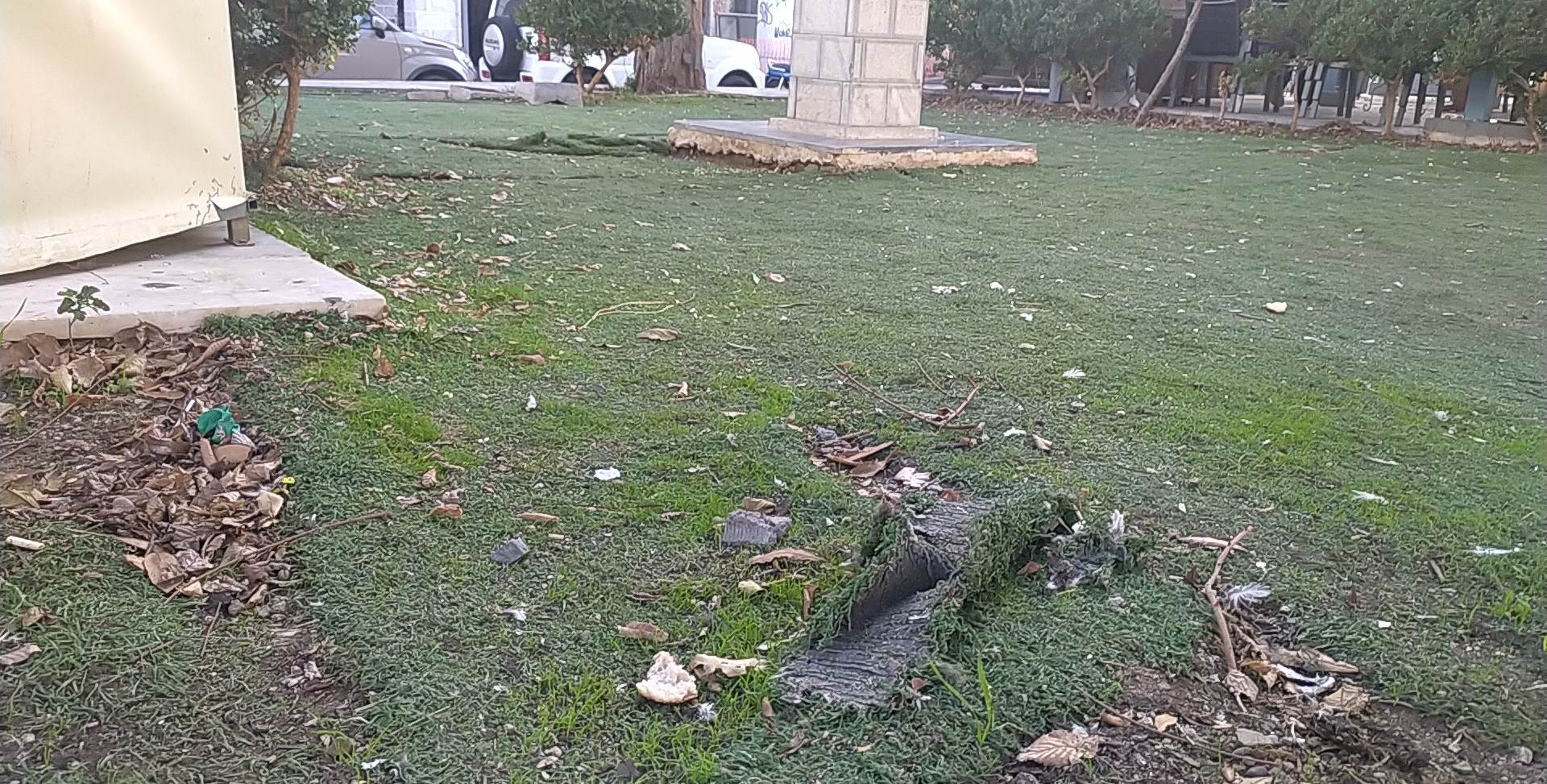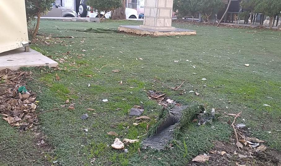 Σε άθλια κατάσταση βρίσκεται ο χώρος πίσω από το περίπτερο, στο κέντρο της πλατείας Μιαούλη.