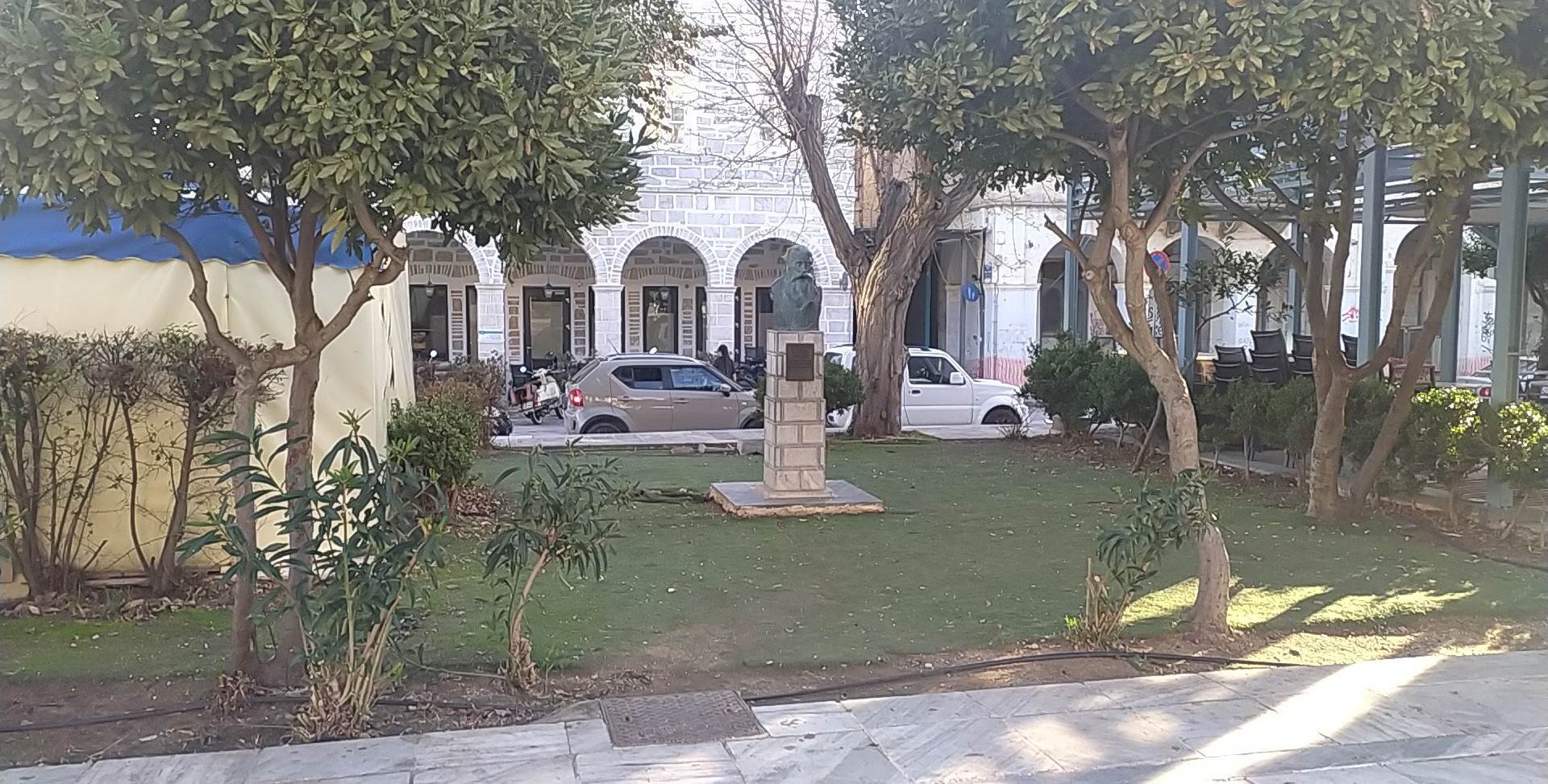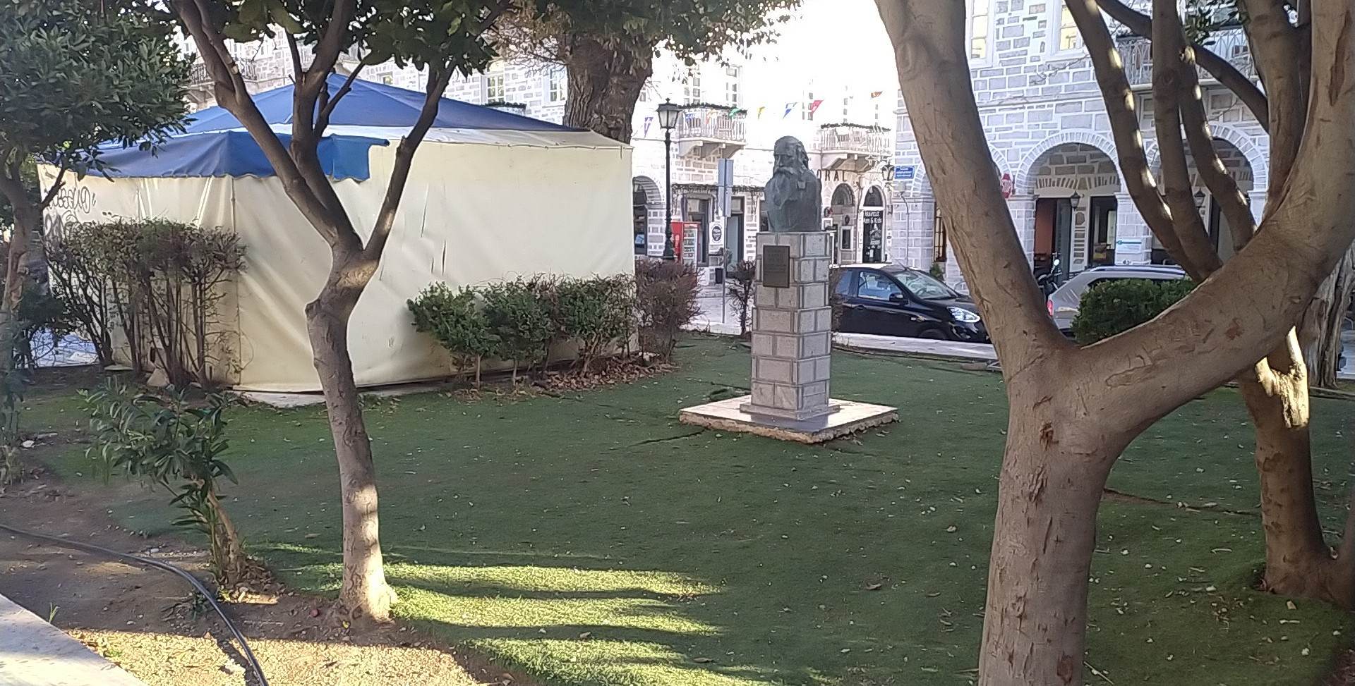 Μέσα σε αυτήν την κατάντια, η προτομή του Θεόφιλου Καΐρη εξακολουθεί να στέκει “περήφανα” αποδεικνύοντας ότι ο σεβασμός στην ιστορία και τον πολιτισμό του τόπου, για τον οποίον τόσος λόγος γίνεται, δεν βρίσκει πάντα εφαρμογή από τους αρμόδιους.