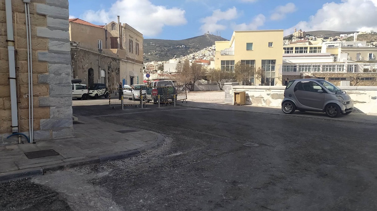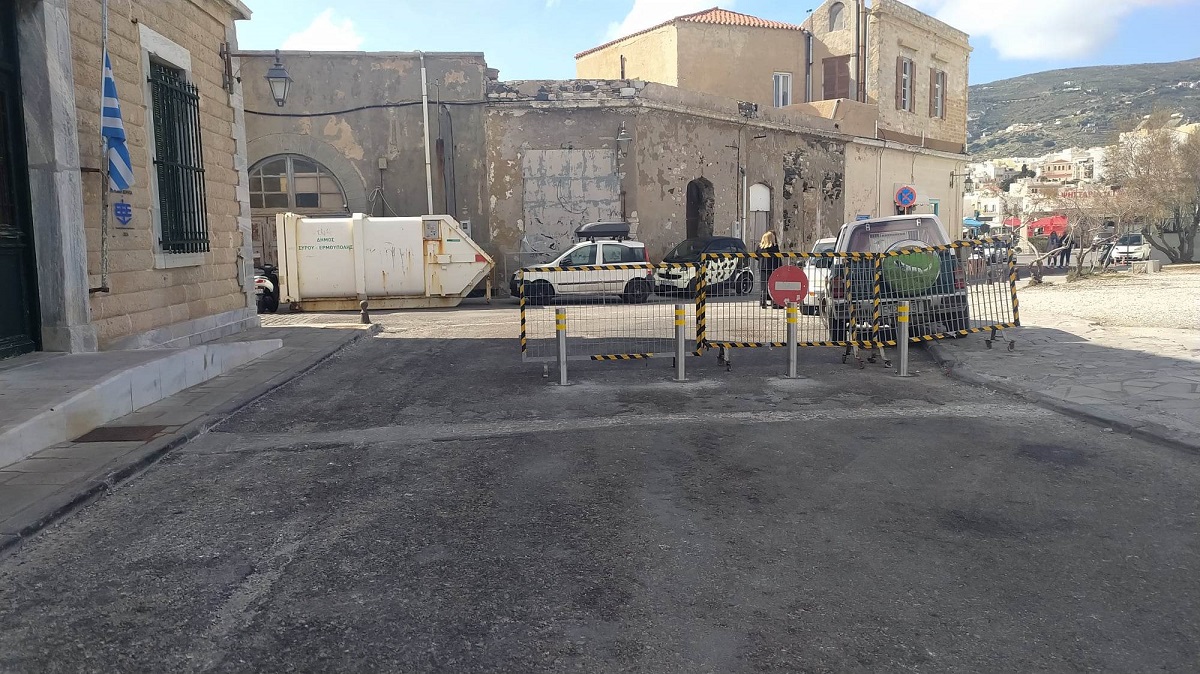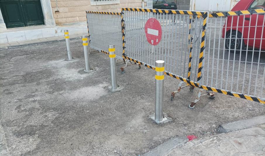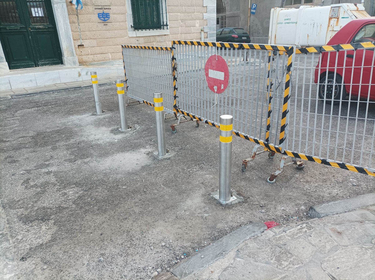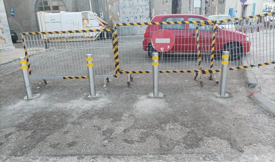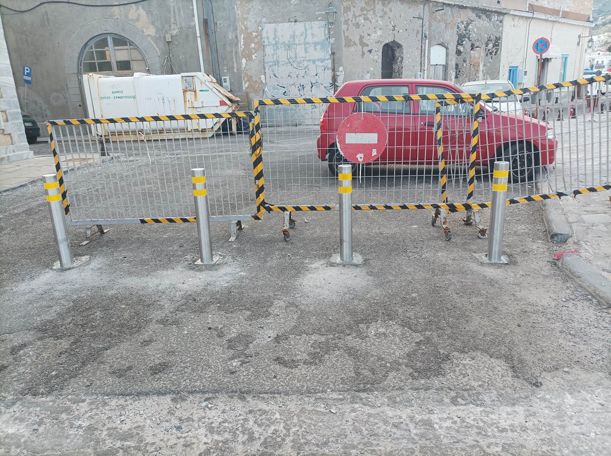 Κολωνάκια εμφανίστηκαν ξαφνικά μπροστά στην Ακαδημία Εμπορικού Ναυτικού Σύρου, με σκοπό πιθανώς την παρεμπόδιση των οχημάτων που εισέρχονται στο παραλιακό τμήμα, από τα Κύματα μέχρι και το ξενοδοχείο Νησάκι, το οποίο άλλοτε είναι προσβάσιμο, άλλοτε κλειστό με κάγκελα περίφραξης και άλλοτε παρεμποδίζεται από παρανόμως σταθμευμένα αυτοκίνητα.