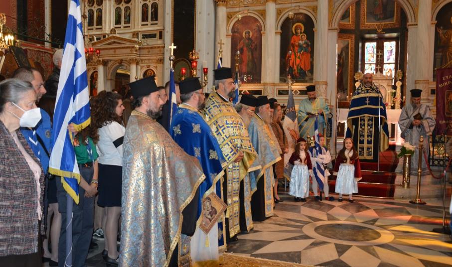 Η επίσημη δοξολογία τελέστηκε στον Ι.Ν. Αγίου Νικολάου εκφώνηση του πανηγυρικού της ημέρας μετά έγινε από την επικοινωνιολόγο – δημοσιογράφο κα Φλώρα Μπαρμπέτα, η οποία άρχισε τον λόγο της, αναφέροντας πως ”η Ελλάδα σήμερα γιορτάζει με μία διπλή γιορτή. Θρησκεία και έθνος σκέψη και υπόσταση, ψυχή και πνεύμα, καρδιά και λογική, ιστορία και μέλλον”. Κάνοντας μία σύντομη ιστορική αναφορά στα γεγονότα της Ελληνικής Επανάστασης και στις δυσκολίες και τις προκλήσεις που αντιμετώπισαν οι πρόγονοί μας στον αγώνα τους για την ελευθερία, η κα. Μπαρμπέτα τόνισε: “Πόσο νιώθουμε, πόσο αντιλαμβανόμαστε, πόσο γνωρίζουμε, πόσο σεβόμαστε τα γεγονότα που διαδραματίστηκαν 200 χρόνια πριν; Πόσο μας επηρεάζουν στην καθημερινή μας ζωή; Πόσο βαρεθήκαμε ή κουραστήκαμε να τα ακούμε; Πόσο τα σνομπάρουμε αλλά και πόσο χρειάζεται να τα οικειοποιηθούμε, να τα ενστερνιστούμε και να τα αγαπήσουμε για να συνεχίσουμε να υπάρχουμε μέσα στη δίνη του παγκοσμιοποιημένου 21ου αιώνα; Σε ποιο βαθμό διδασκόμαστε και αναλύουμε την ιστορία μας σήμερα στα σχολεία, στα πανεπιστήμια ; Σκεφτείτε να είχε χαθεί η γλώσσα μας , η γραφή μας, να είχαν χαθεί οι παραδόσεις μας, τα ήθη κι έθιμά μας. Χωρίς εθνική ταυτότητα δεν υπάρχει περιθώριο κοινωνικής ή ατομικής επιβίωσης” ανέφερε, μεταξύ άλλων, η κα.Μπαρμπέτα και ολοκληρώνοντας το λόγο της, προέτρεψε τη γενιά που τώρα παραδίδει τη σκυτάλη στους νεότερους: “Στην εποχή της τεχνητής νοημοσύνης εμείς οφείλουμε να αγκαλιάσουμε την εξέλιξη, την επιστήμη, την τεχνολογία, χορεύοντας με την ιστορία”.