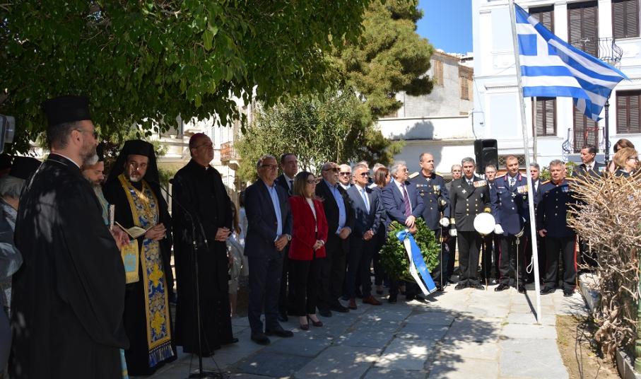 Ακολούθησε επιμνημόσυνη δέηση και κατάθεση στεφάνων στο Εθνικό Ηρώο της πόλης.