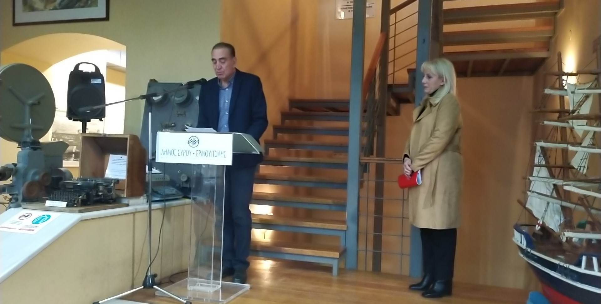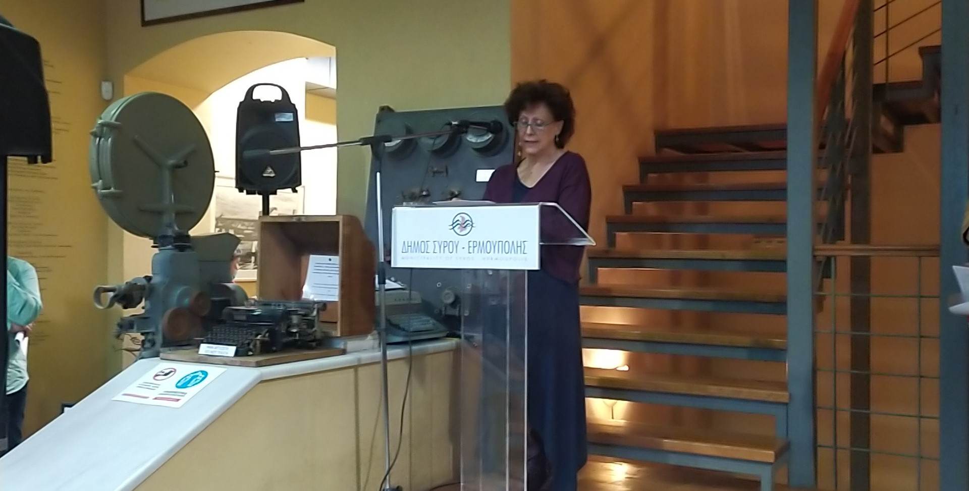 Την εκδήλωση προλόγισε η αντιδήμαρχος Πολιτισμού, Αλίκη Λεονταρίτη, η οποία μίλησε για τη σημασία της κατασκευής του Enfield στη Σύρο, σε μία χρονική περίοδο όπου η Ερμούπολη βρισκόταν στο χαμηλότερο ιστορικά όριο των 13.500 κατοίκων, με το 20% του πληθυσμού της να έχει πάρει τον δρόμο της μετανάστευσης. “Αυτό το εγχείρημα ξαναέφερε στη Σύρο την ατμόσφαιρα της αίγλης που χαρακτήριζε το νησί τα χρόνια της ακμής του. Η έκθεση εστιάζει σε αυτήν ακριβώς την παράμετρο, η οποία κάνει όλους εμάς υπερήφανους και αξίζει να γίνει ευρύτερα γνωστή ως μία πρωτοποριακή πρωτοβουλία”, ανέφερε χαρακτηριστικά η αντιδήμαρχος και στη συνέχεια διάβασε το μήνυμα της οικογένειας Γιάννη Γουλανδρή, μέσω του οποίου τονίστηκε η σπουδαιότητα αυτού του διεθνώς πρωτοποριακού δημιουργήματος που επιτεύχθηκε 50 χρόνια πριν, σε ένα μικρό νησί του Αιγαίου.