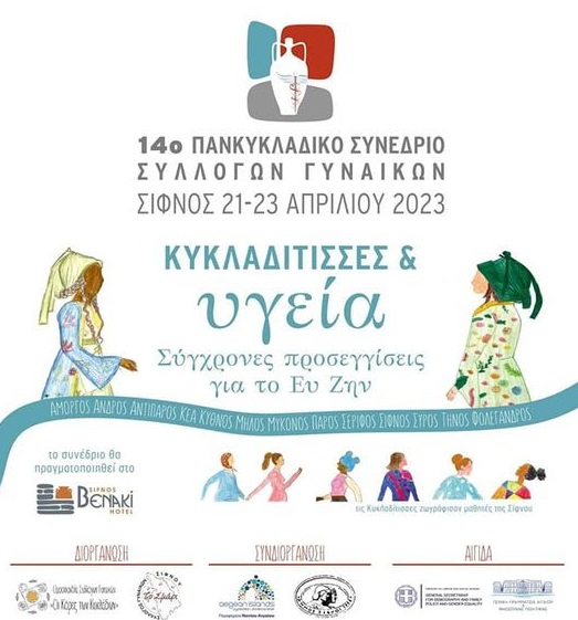 Υπενθυμίζεται ότι αύριο, Παρασκευή 21 Απριλίου, αρχίζει στη Σίφνο το 14ο Πανκυκλαδικό Συνέδριο Συλλόγων Γυναικών, που διοργανώνεται από την Ομοσπονδία Συλλόγων Γυναικών «Οι Κόρες των Κυκλάδων» και τον Σύλλογο Γυναικών Σίφνου «Το Σμάρι», με θέμα «Κυκλαδίτισσες και Υγεία : Σύγχρονες Προσεγγίσεις για το Ευ Ζην».
