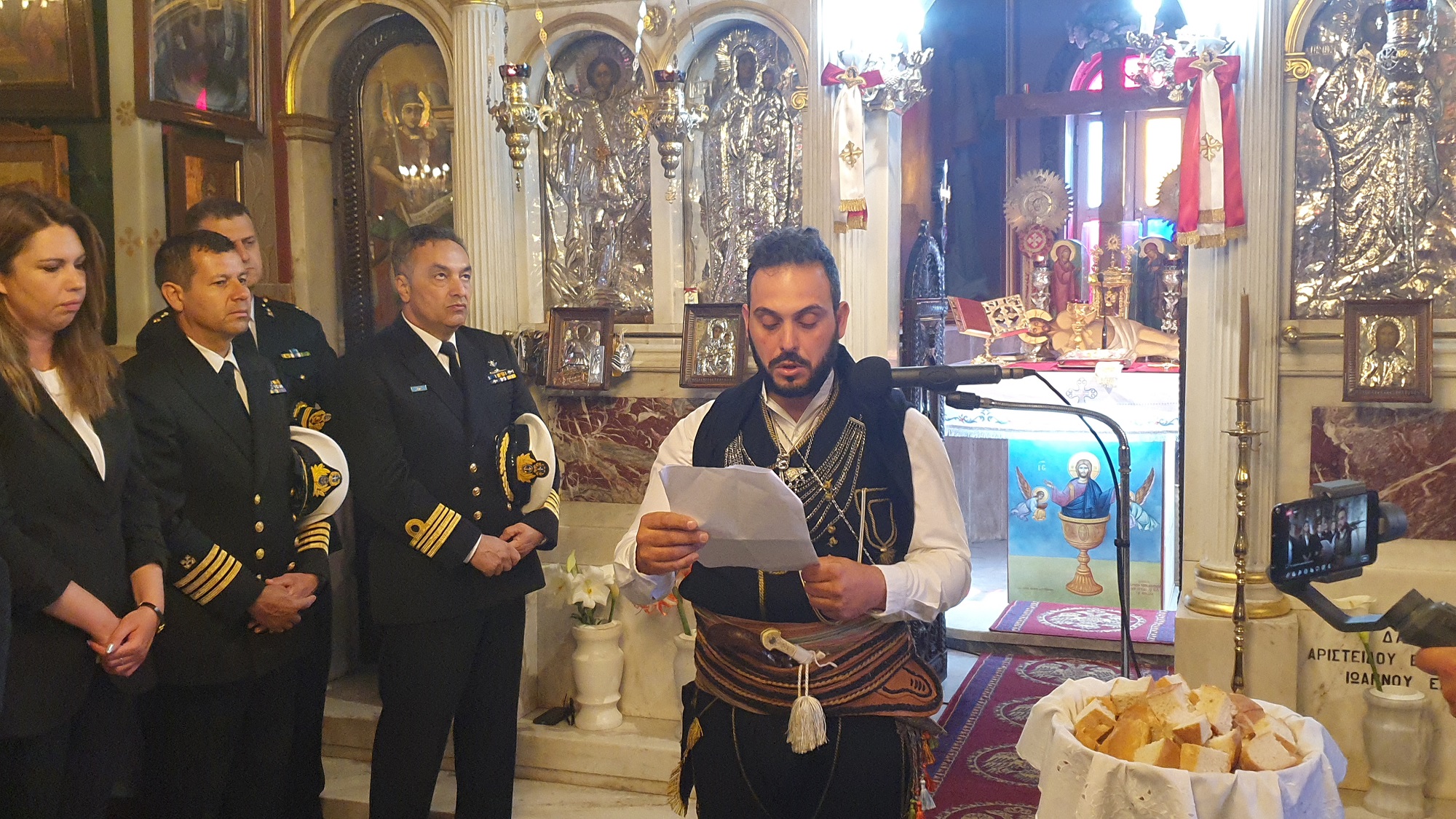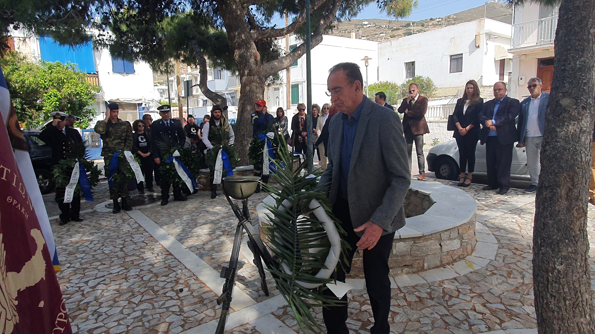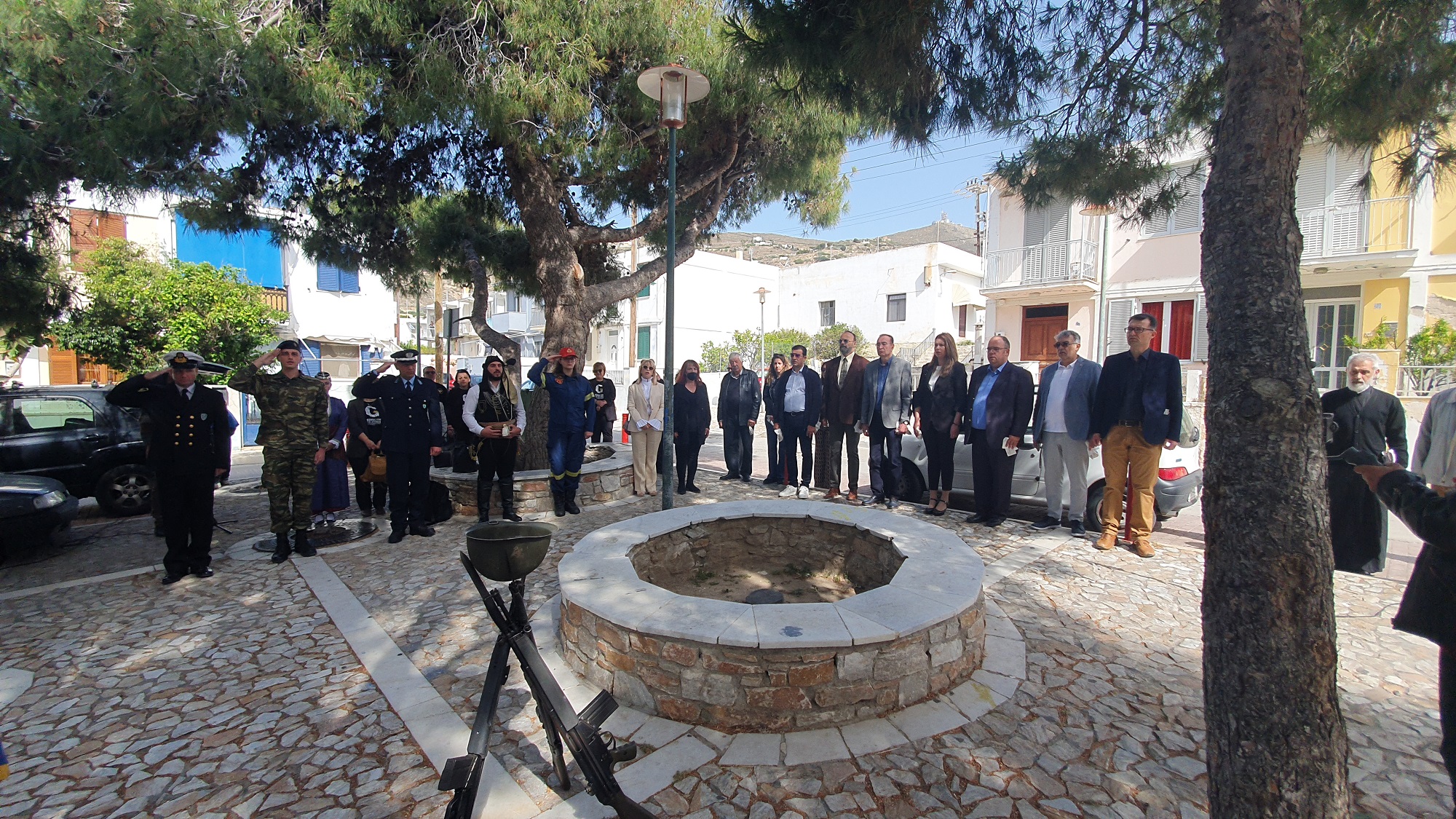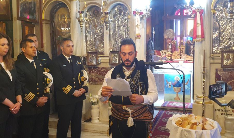 Μετά το πέρας της δοξολογίας πραγματοποίησε ομιλία, ο πρόεδρος του Συλλόγου Ποντίων και Βορειοελλαδιτών Σύρου «Ο Εύξεινος Πόντος», Νικόλαος Καρυοφυλλίδης, ο οποίος εμφανώς συγκινημένος, μεταξύ άλλων, ανέφερε πως "έχουμε δικαίωμα στην συγνώμη, δικαίωμα στην αποδοχή της αλήθειας. Η διεθνής αναγνώριση της γενοκτονίας των Ποντίων είναι αδιαπραγμάτευτη και επιβάλλεται και αποτελεί στόχο όλων μας. Θα κλείσω με μία υπόσχεση. Δεν ξεχνώ. Και με μία ευχή. Ποτέ ξανά".