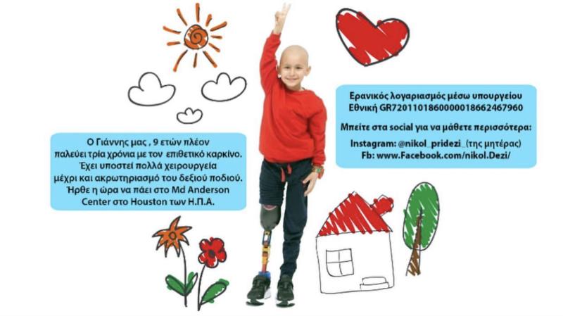 Ο μικρός Γιάννης μας χρειάζεται, εδώ και 3 χρόνια έχει διαγνωστεί με επιθετικό καρκίνο στα κόκκαλα (οστεοσάρκωμα) και τώρα έχει υποτροπιάσει για 3η φορά σε 2 σημεία του ποδιού του.