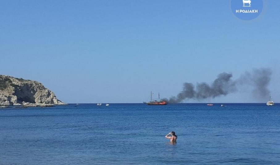 Στην περιοχή έσπευσαν στελέχη του Λιμεναρχείου Ρόδου, κλιμάκιο της Πυροσβεστικής Υπηρεσίας για να βοηθήσουν στην κατάσβεση της φωτιάς.