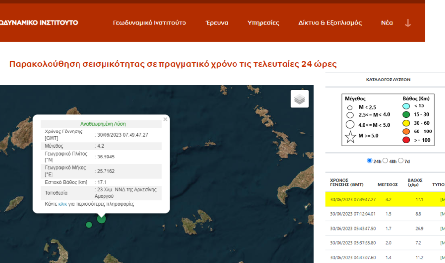 Σεισμός 4, 2 Ρίχτερ ανάμεσα σε Σαντορίνη και Αμοργό