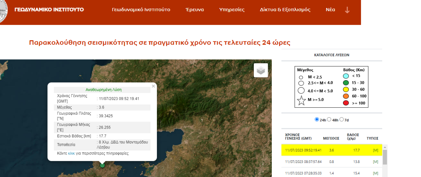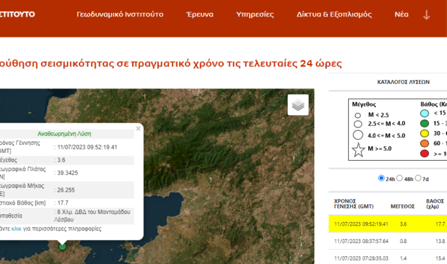 Σεισμός 3,6 Ρίχτερ σημειώθηκε στη Λέσβο με εστιακό βάθος 17,7 χιλιομέτρων.