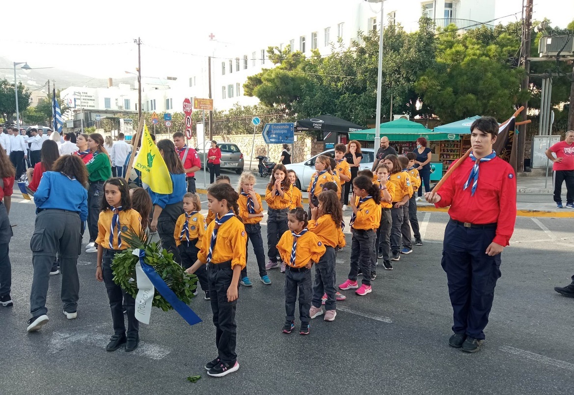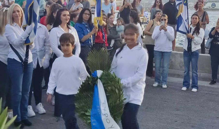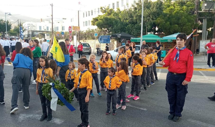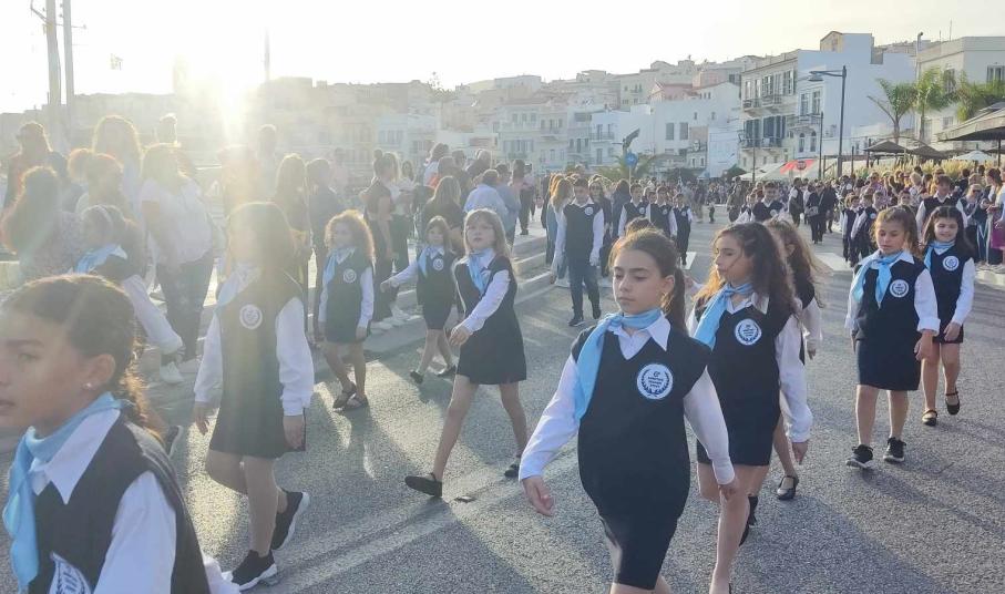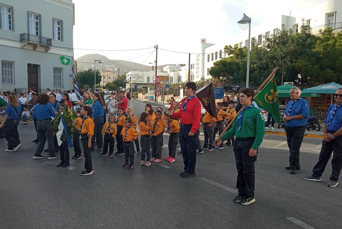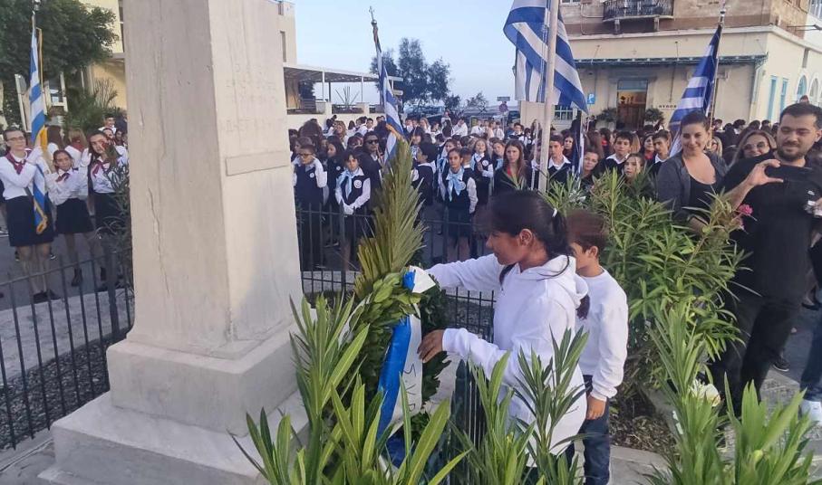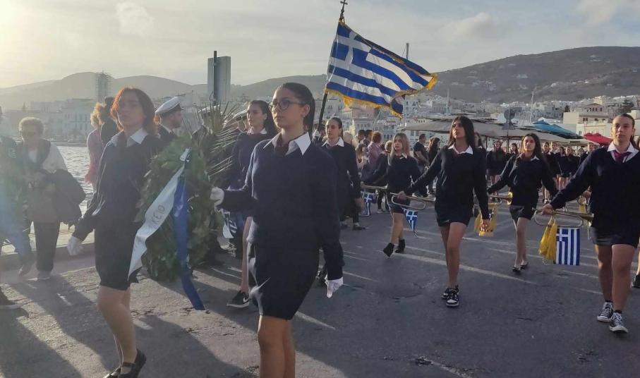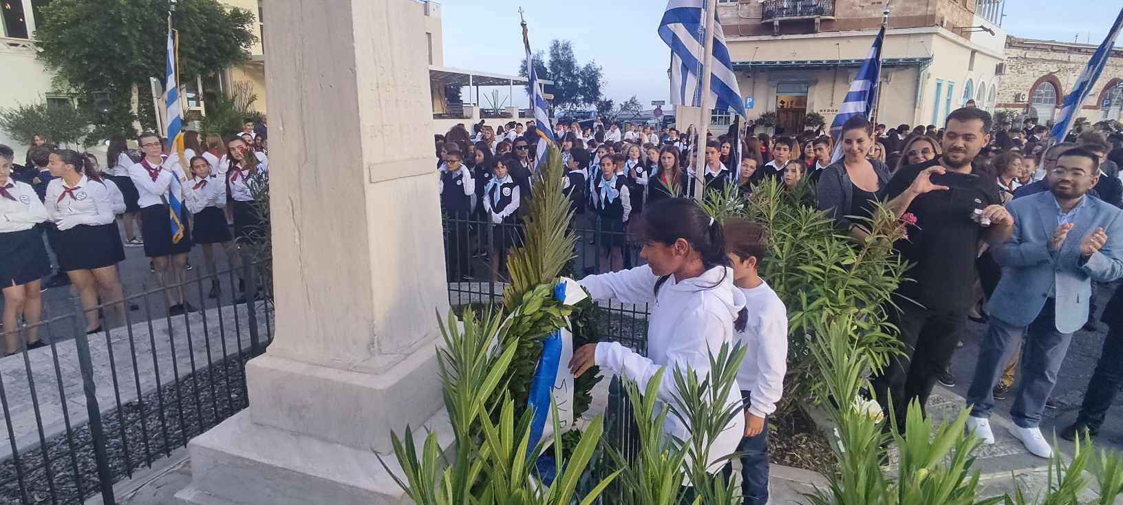 Με πλήθος κόσμου να δίνει το "παρών" πραγματοποιήθηκε με μεγαλοπρέπεια και συγκίνηση, η στεφάνωση των μνημείων στο πλαίσιο των εορτασμών για την επέτειο της 28ης Οκτωβρίου 1940. Όλοι οι παρευρισκόμενοι παρακολούθησαν, το προσκύνημα μαθητών των Σχολείων της Σύρου, σπουδαστών και προσκόπων, που προσήλθαν συντεταγμένοι με επικεφαλής τους δασκάλους, καθηγητές και βαθμοφόρους για τη κατάθεση στεφάνων.