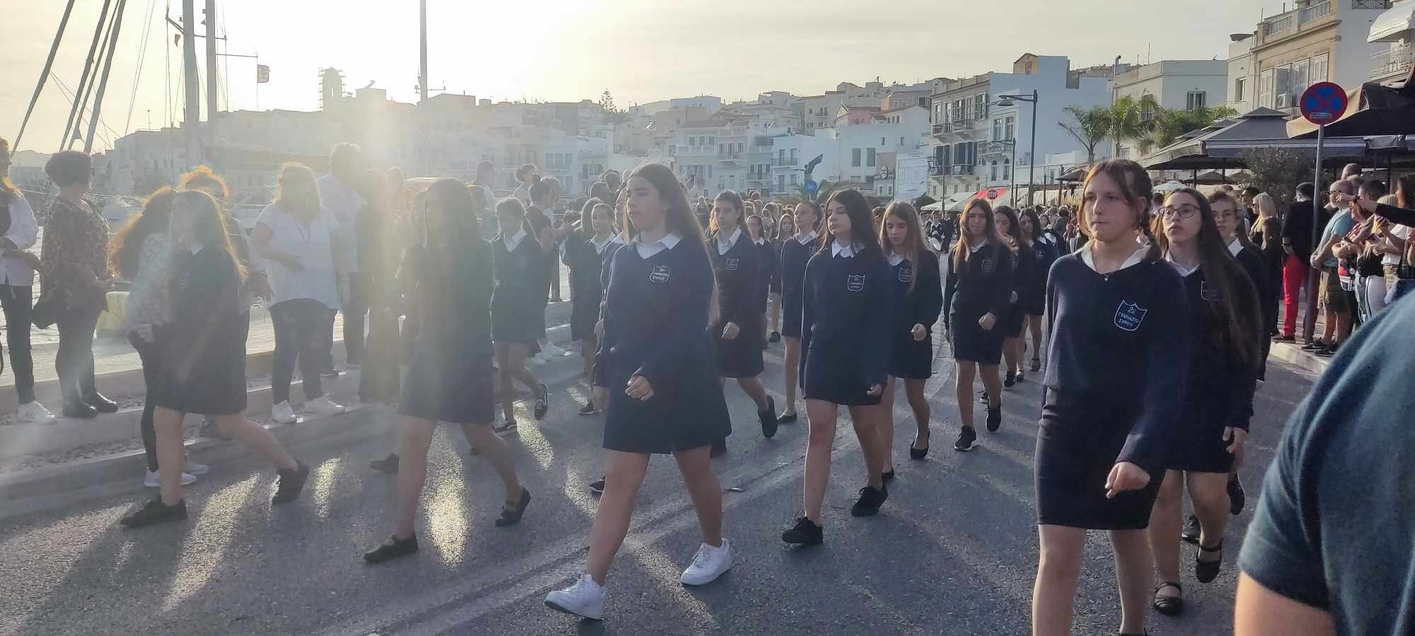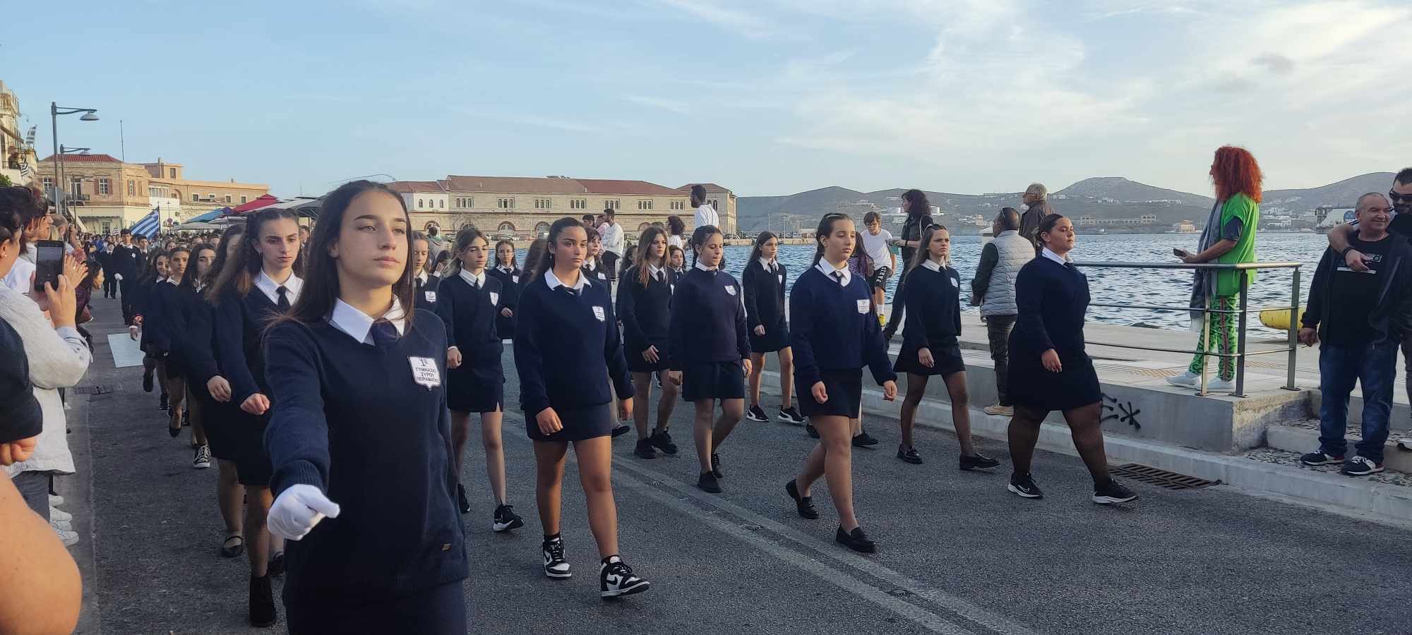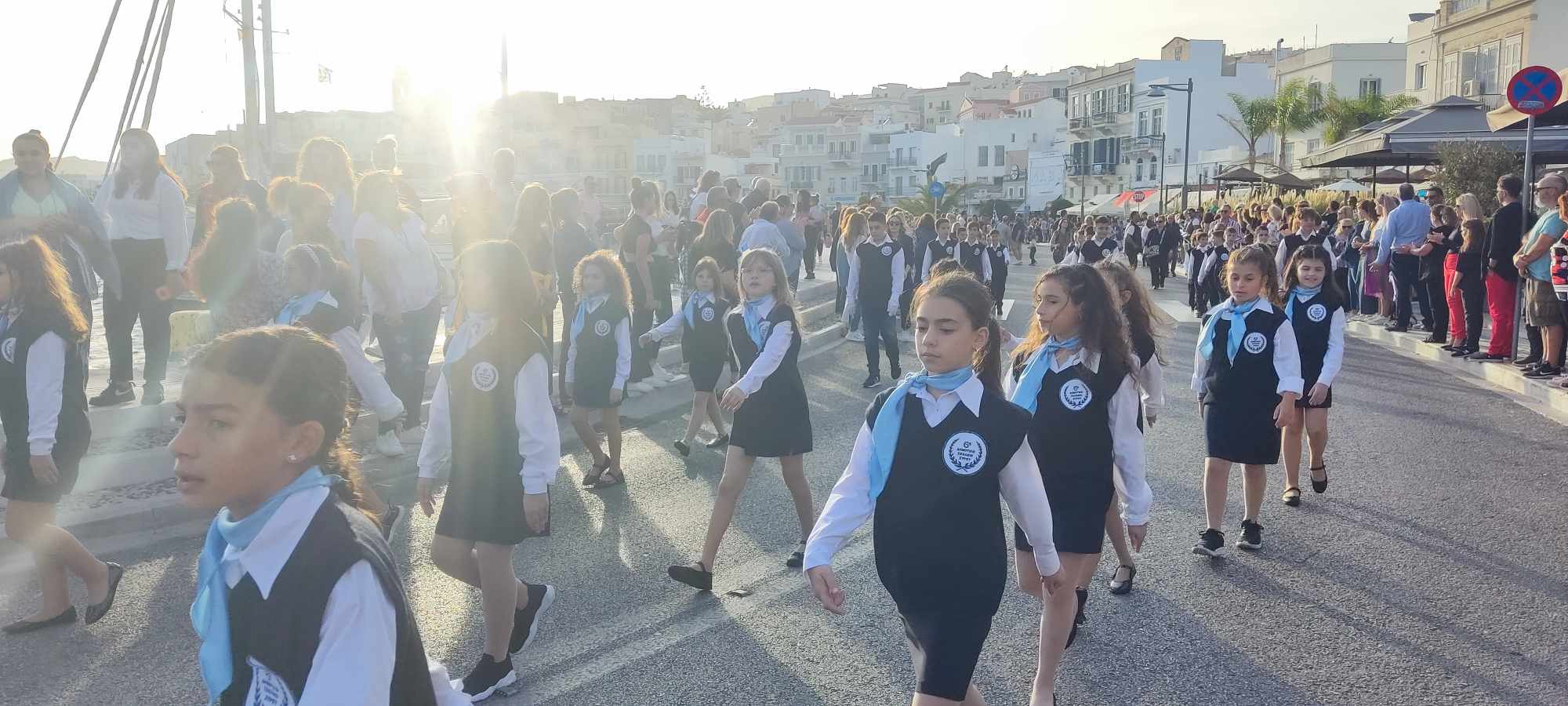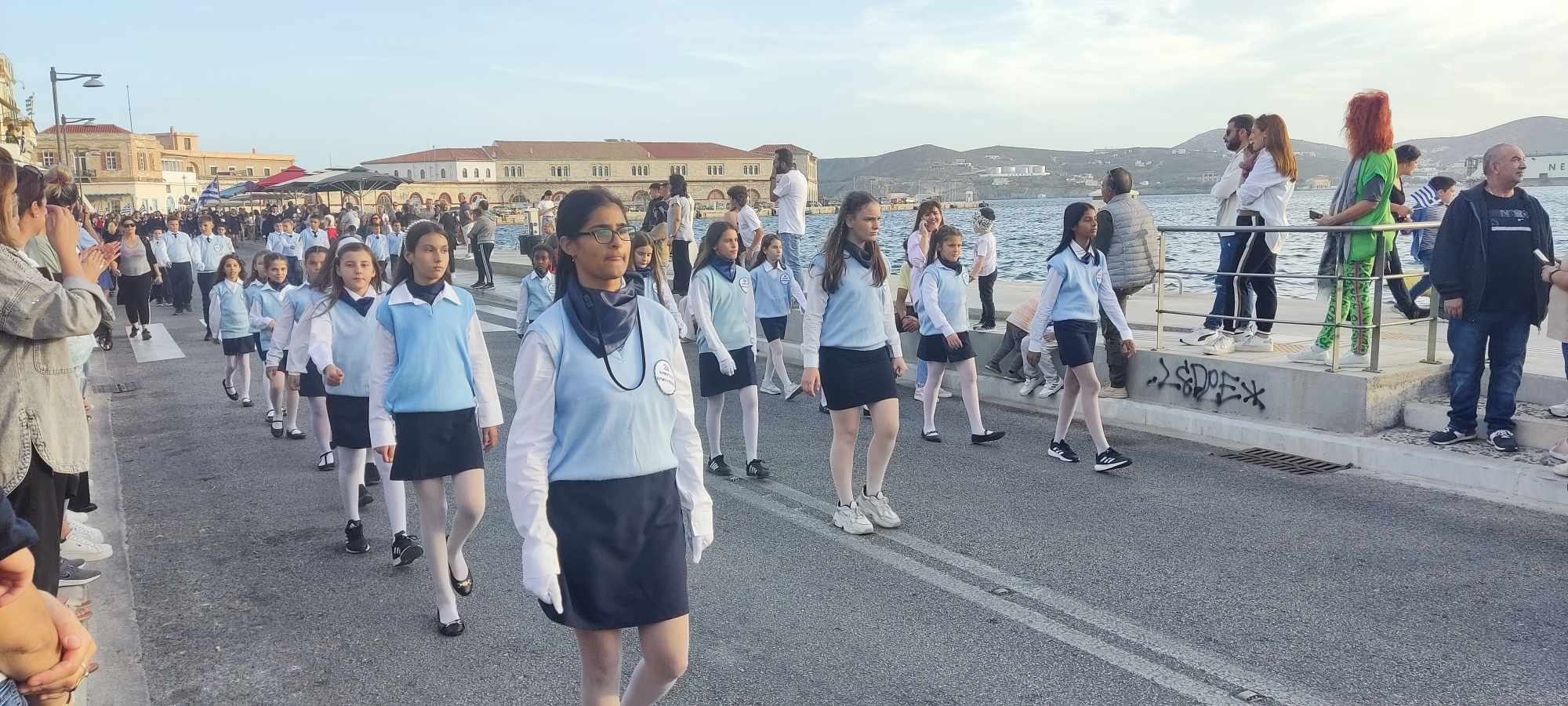 Οι εορταστικές εκδηλώσεις ξεκίνησαν το πρωί στα Σχολεία Α/θμιας και Β/θμιας Εκπαίδευσης  και στην Ακαδημία Εμπορικού Ναυτικού Σύρου. Στις 11:00 πραγματοποιήθηκε επιμνημόσυνη δέηση στο Κοιμητήριο του Ι.Ν. Αγίου Γεωργίου, παρουσία Αρχών, Προϊσταμένων υπηρεσιών, αποδεκτών επισήμων προγραμμάτων και των σημαιοφόρων του 4ου και του 6ου Δημοτικού Σχολείου, του 3ου  Γυμνασίου, της Ακαδημίας Εμπορικού Ναυτικού και του Σώματος Ελλήνων Προσκόπων.