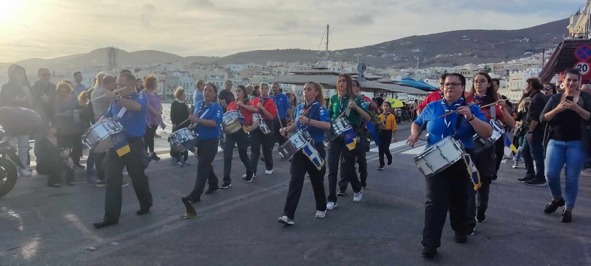 Από μαθητές του Γενικού Λυκείου Σύρου και από το Σώμα Ελλήνων Προσκόπων.