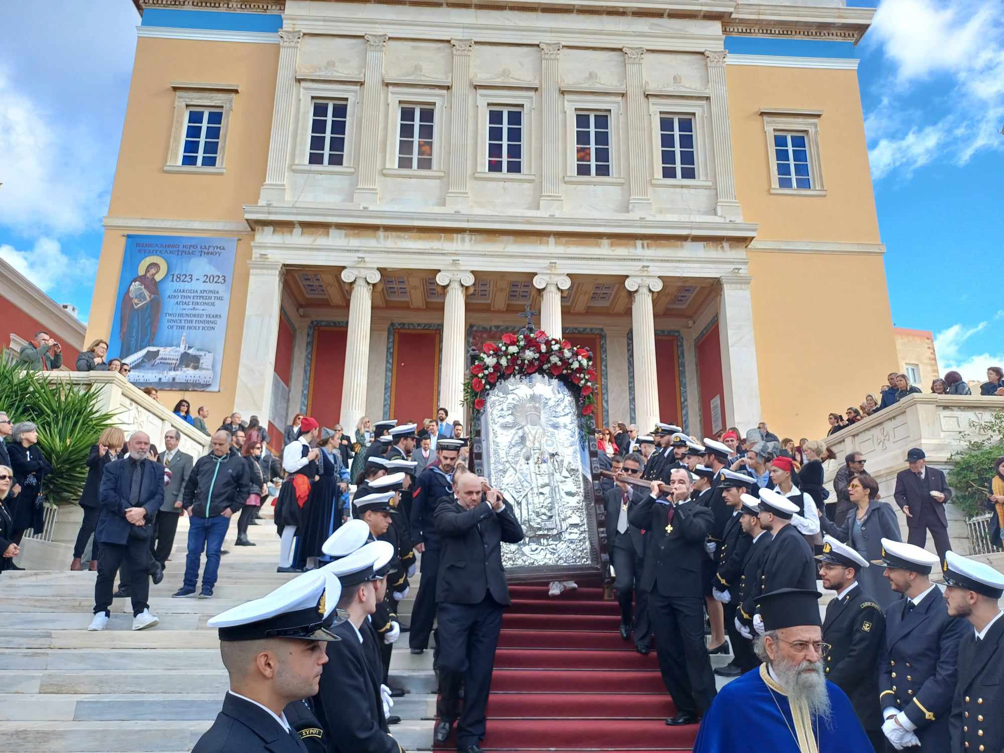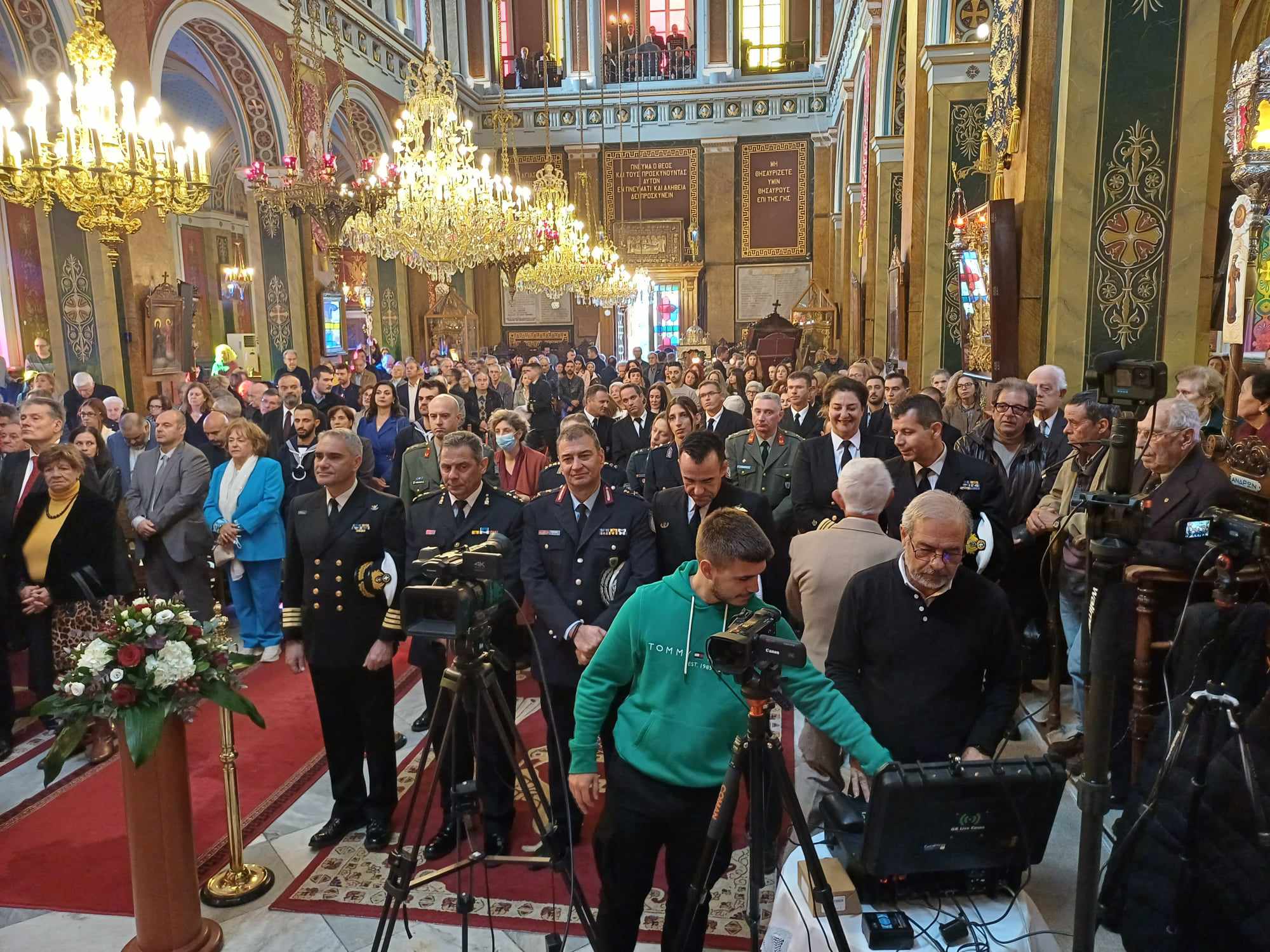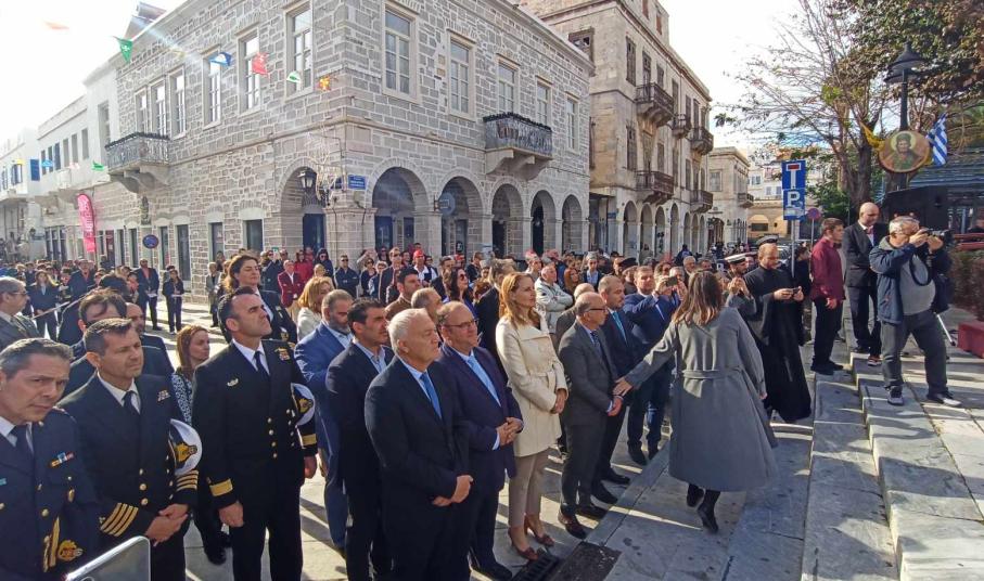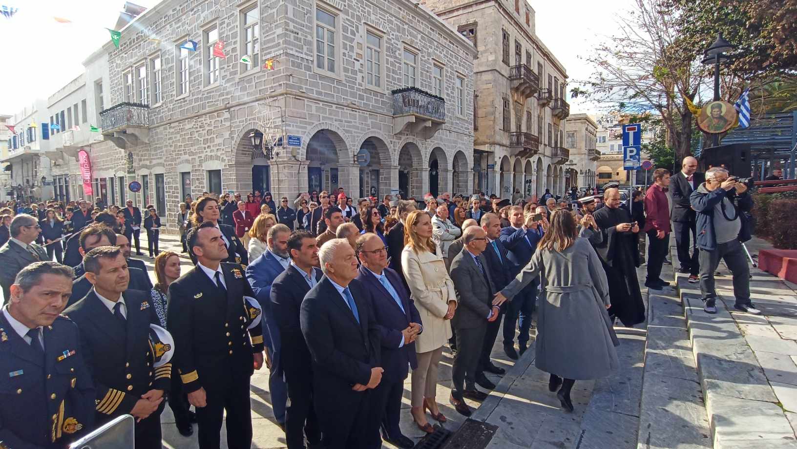Το εορταστικό κλίμα της ημέρας συμπλήρωσαν η σημαντική παρουσία του κόσμου που είχε κατακλύσει τους δρόμους, τα πολλά σκάφη που έπλεαν μέσα στο λιμάνι της Ερμούπολης και οι συριγμοί των πλοίων.
