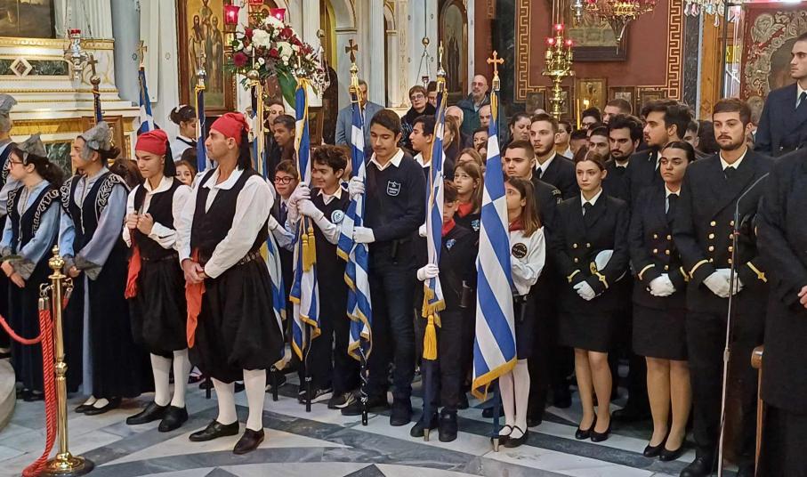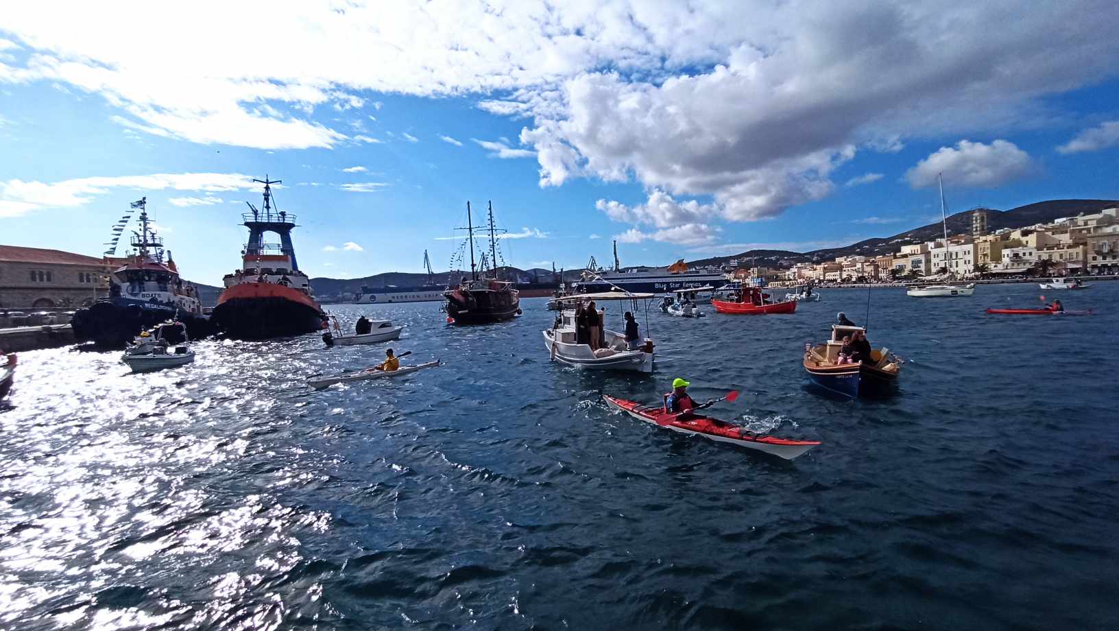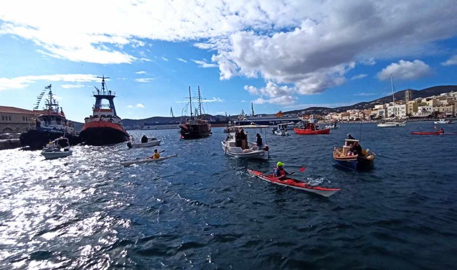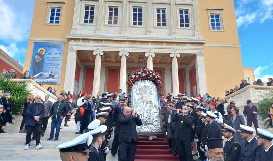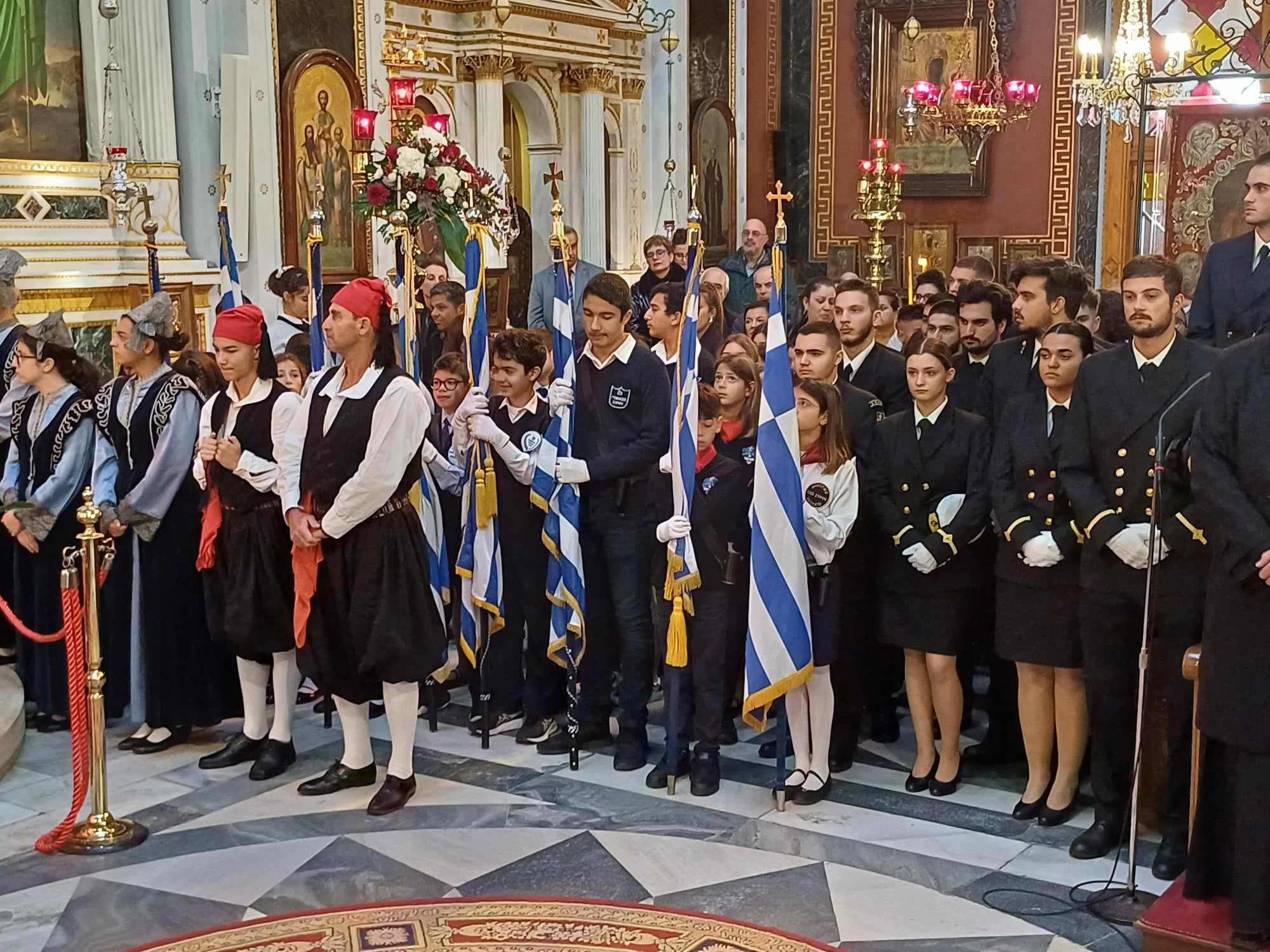 Το εορταστικό κλίμα της ημέρας συμπλήρωσαν η σημαντική παρουσία του κόσμου που είχε κατακλύσει τους δρόμους, τα πολλά σκάφη που έπλεαν μέσα στο λιμάνι της Ερμούπολης και οι συριγμοί των πλοίων.