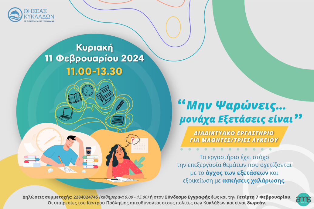 Περισσότερες πληροφορίες στο τηλέφωνο 2284024745 (καθημερινά 9.00-15.00) και στην ιστοσελίδα του Κέντρου Πρόληψης: http://thiseaskyklades.gr/?p=6644us06web.zoom.us