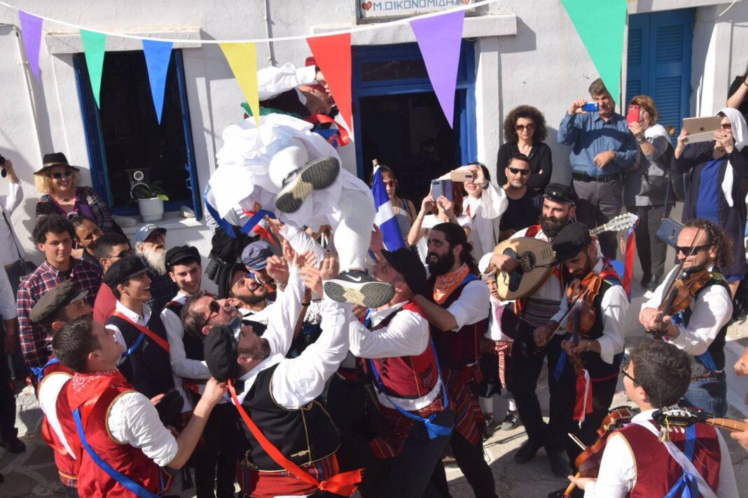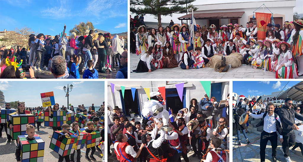 Τα γιορτινά της έβαλε και η Μύκονος, με τους καρναβαλιστές να γεμίζουν τη κεντρική παραλία του νησιού. Ο δήμαρχος, Χρήστος Βερώνης, σε δήλωσή του ανέφερε, "Ημέρα ξεφαντώματος και κεφιού! Όλοι χαρούμενοι! Όλοι χαμογελαστοί! Χρόνια πολλά σε όλους! Και του χρόνου!"