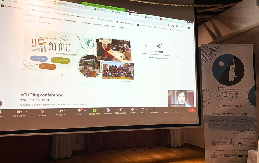Επίσης, αξίζει να σημειωθεί πως με επιτυχία ολοκληρώθηκε η εκδήλωση του ευρωπαϊκού προγράμματος eCHOIng, από 7 διαφορετικούς συλλόγους 6 νησιών στις Κυκλάδες (Ανδρος, Αντίπαρος, Πάρος, Κύθνος, Κέα). Η εκδήλωση με τίτλο «Η Ανοιχτή Καινοτομία και η Πολιτιστική Κληρονομιά των Κυκλάδων» πραγματοποιήθηκε σε υβριδική μορφή στην Αμοργό και διαδικτυακά, ενταγμένη στο 15ο Πανκυκλαδικό Συνέδριο Συλλόγων Γυναικών Γυναίκες στις Κυκλάδες: Δημιουργία-Καινοτομία-Εξωστρέφεια. Οι σύλλογοι παρουσίασαν στο κοινό ιδέες για έργα Ανοιχτής Καινοτομίας, τα οποία με τους κατάλληλους πόρους μπορούν να οδηγήσουν στην ανάκαμψη της πολιτιστικής κληρονομιάς κάθε νησιού:
