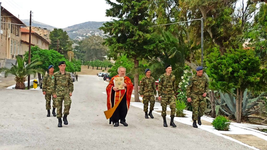 Με μία απλή και σεμνή τελετή τιμήθηκε και φέτος ο προστάτης του πεζικού και του στρατού ξηράς, Άγιος Γεώργιος στο Στρατόπεδο “Λγου Ζαφείρη Αποστόλου” στη Σύρο.