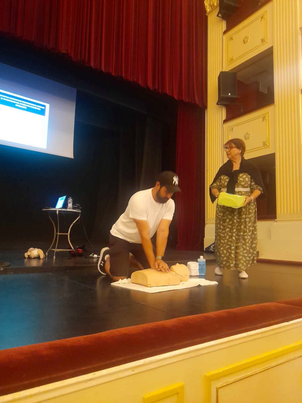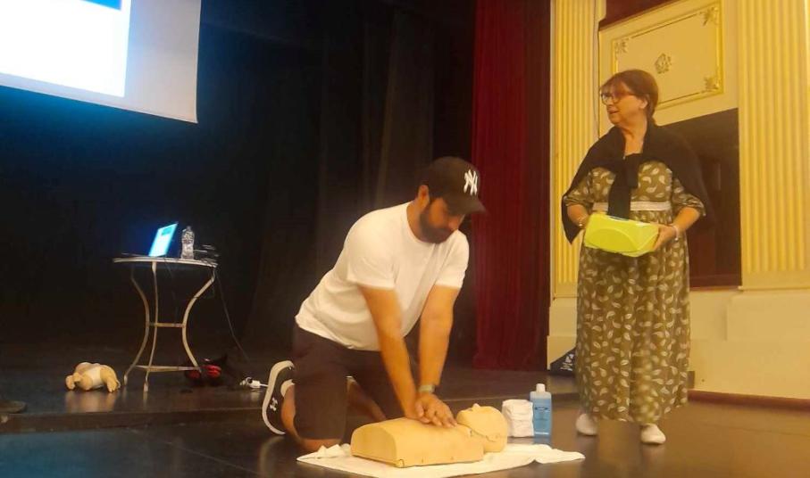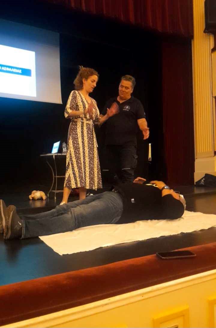 Η παρουσίαση για την παροχή πρώτων βοηθειών έγινε στο πλαίσιο της εγκατάσταση απινιδωτή στο χώρο του θεάτρου.