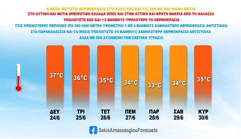 Ο μετεωρολόγος Σάκης Αρναούτογλου δίνει τις θερμοκρασίες του καιρού μέχρι τις 30 Ιουνίου με μια ανάρτησή του στο facebook.