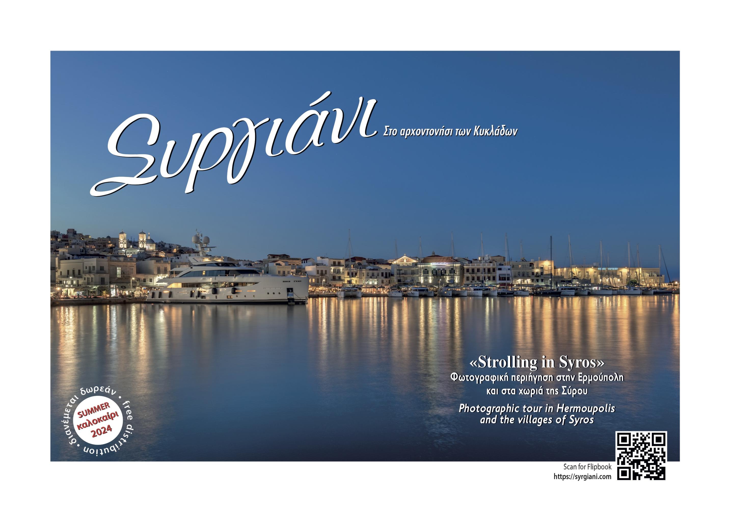 Ο λόγος για το "Συργιανι", το οποίο μέσα από 10.000 αντίτυπα, προβάλει την Ερμούπολη και τα χωριά της Σύρου, εμπεριέχοντας παράλληλα πληροφορίες για τα καταστήματα εστίασης (εστιατόρια, καφέ, μπαρ), αλλά και τις εμπορικές επιχειρήσεις του νησιού, δίνοντας έμφαση και στον πολιτιστικό τομέα της Σύρου.