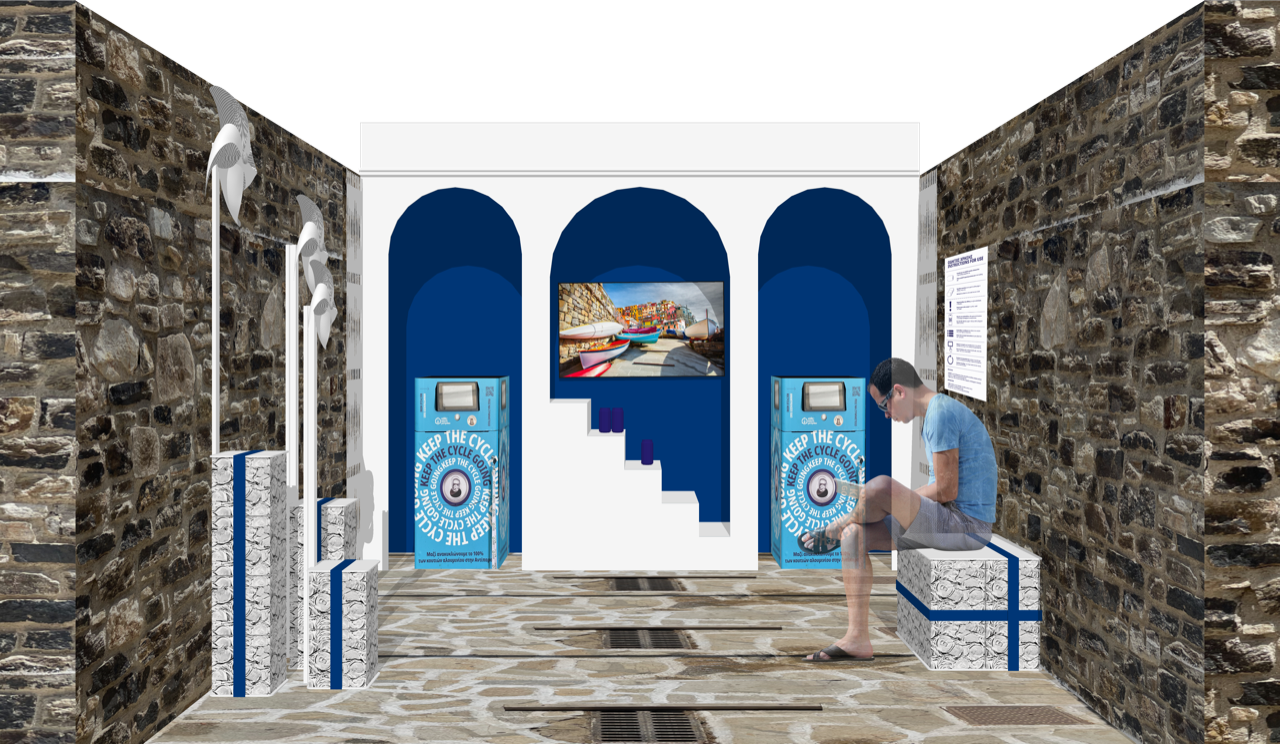 Τοποθετήθηκαν δύο μηχανήματα ανακύκλωσης Pure Smart Crushers στα οποία μπορούν να συλλέγονται και να συμπιέζονται κουτάκια αλουμινίου, κάθε μεγέθους και σχήματος. Πρόκειται για το μικρότερο μηχάνημα τύπου RVM (Reverse Vending Machine) στον κόσμο, με πατενταρισμένη τεχνολογία, που κατασκευάζεται από τη φινλανδική εταιρεία Pure Recycle και αποτελεί, οικονομικά και πρακτικά, μία αποδοτική λύση για μικρές κοινότητες όπως τα νησιά, καθώς προσφέρει σημαντική εξοικονόμηση κόστους αλλά και χωρητικότητας σε όλο το μήκος της αντίστροφης εφοδιαστικής αλυσίδας.