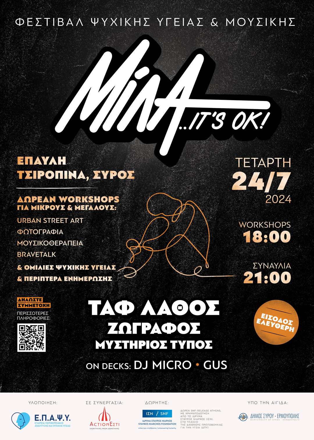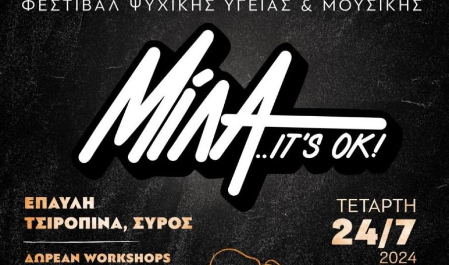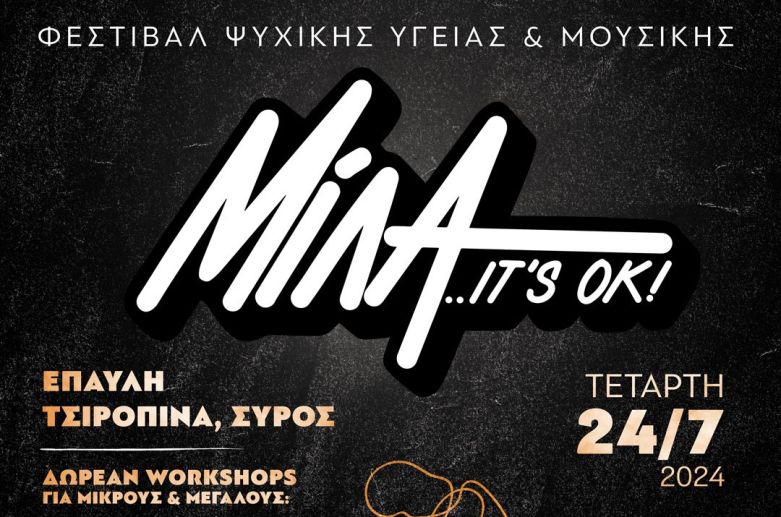 "ΜΙΛΑ… It’s OK!" είναι το θέμα του Φεστιβάλ Ψυχικής Υγείας και Μουσικής που θα πραγματοποιηθεί για πρώτη φορά στη Σύρο.