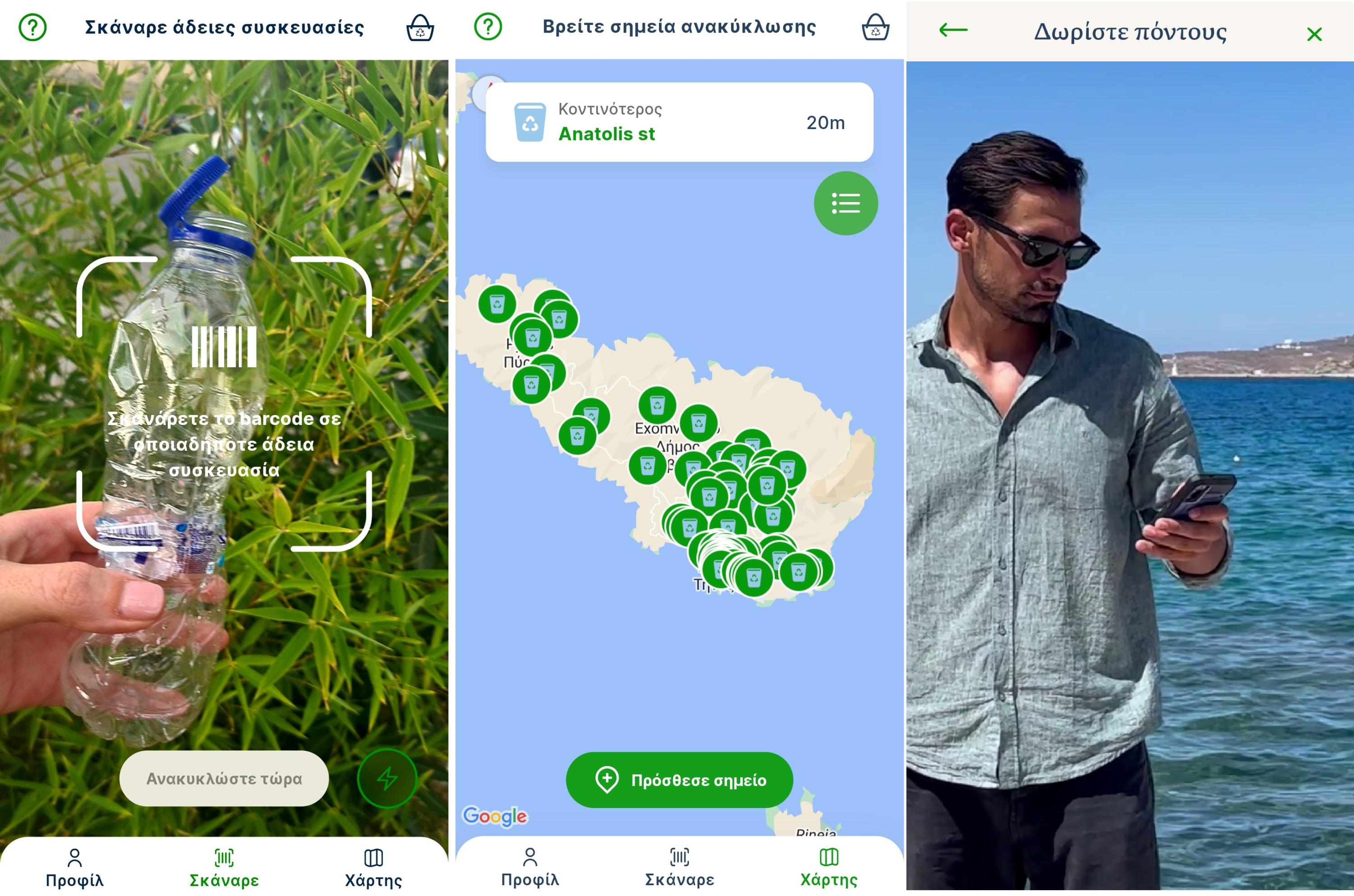 Την ίδια ώρα, αναφέρθηκε και στα σημεία που βρίσκονται οι συγκεκριμένοι κάδοι και πόσο αυτό βοηθά, ειδικά τους τουρίστες, "αυτό είναι ιδιαίτερα σημαντικό κυρίως για τους τουρίστες, καθώς ένας κάτοικος γνωρίζει που βρίσκονται οι κάδοι στον τόπο του, όταν όμως ένας επισκέπτης, έρχεται σε ένα μέρος είναι σημαντικό να το γνωρίζει. Το πιο σημαντικό της εφαρμογής και αυτό που την διαφοροποιεί, είναι ότι για κάθε συσκευασία που ανακυκλώνει κάποιος, λαμβάνει και έναν περιβαλλοντικό πόντο, που μπορεί να τον μετατρέψει σε μία χρηματική δωρεά και να τον δωρίσει σε μία οργάνωση της επιλογής του. Αυτό είναι ένα επιπλέον κίνητρο για τους χρήστες".
