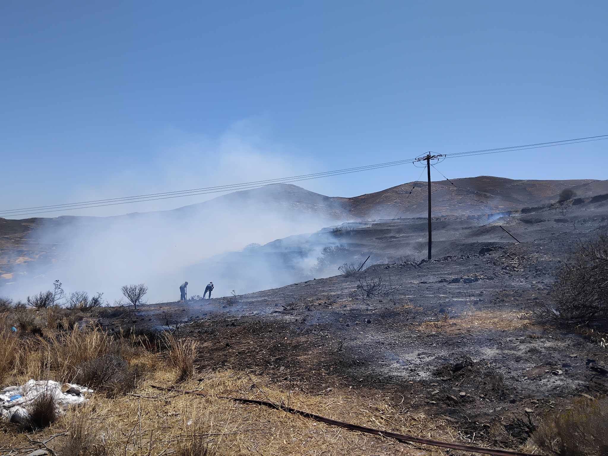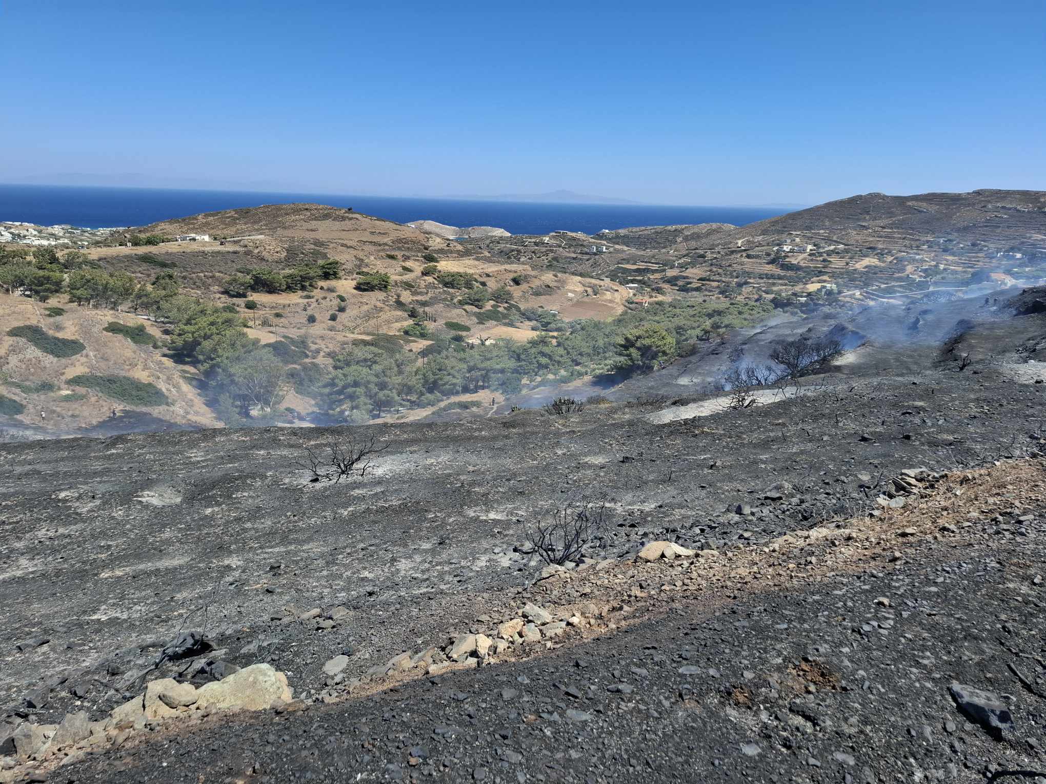 Ενδεικτικό της κατάστασης που επικράτησε, ήταν ότι ο καπνός από τη φωτιά που έκαιγε σε χαμηλή βλάστηση, υπήρξε ορατός ακόμη και από την Ερμούπολη.