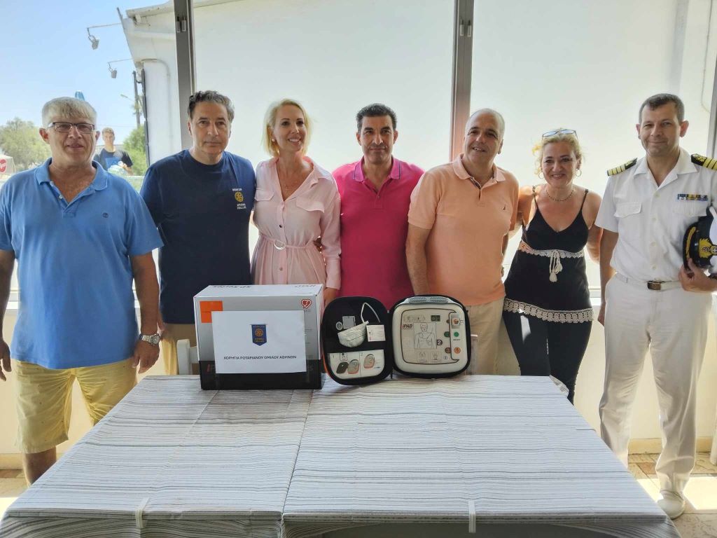 "Δωρίσαμε σε συνεργασία με τον Ροταριανό Όμιλο της Αθήνας, έναν απινιδωτή. Πρόκειται για ένα αίτημα που λάβαμε κατά τη διάρκεια του χειμώνα, από τον πρόεδρο της Κοινότητας του Μάννα. Αυτό που όφειλα, πρώτα από όλα ως άνθρωπος, ήταν να βρω έναν χορηγό για την απόκτηση του συγκεκριμένου μηχανήματος και αυτός είναι ο Ροταριανός Όμιλος", σημείωσε μεταξύ άλλων, κατά τη διάρκεια της εκδήλωσης η βουλευτής Κυκλάδων, Κατερίνα Μονογυιού.