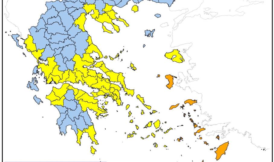 Συγκεκριμένα, πολύ υψηλός κίνδυνος πυρκαγιάς θα υπάρξει σε Κρήτη, Δωδεκάνησα, Χίο, Ψαρά, Σάμο και Ικαρία. Παράλληλα υψηλός κίνδυνος υπάρχει στα περισσότερα εκ των υπολοίπων νησιών και σε αρκετές περιοχές της ηπειρωτικής.