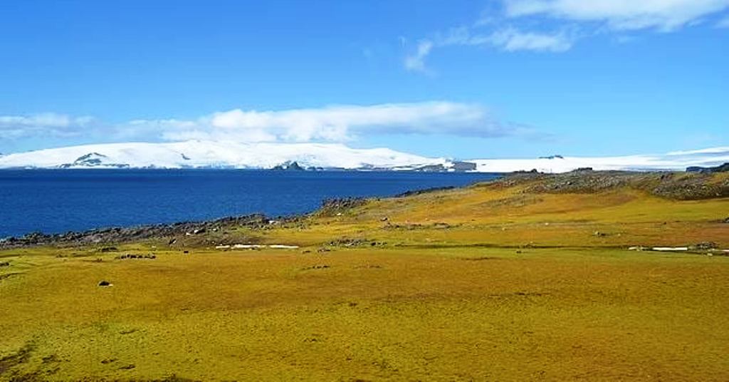 Εικόνα από το νησί Άρντλει της Ανταρκτικής με τους πάγους να έχουν υποχωρήσει και να δίνουν τη θέση τους σε χλωρίδα. πηγή φωτό. (Dan Charman)