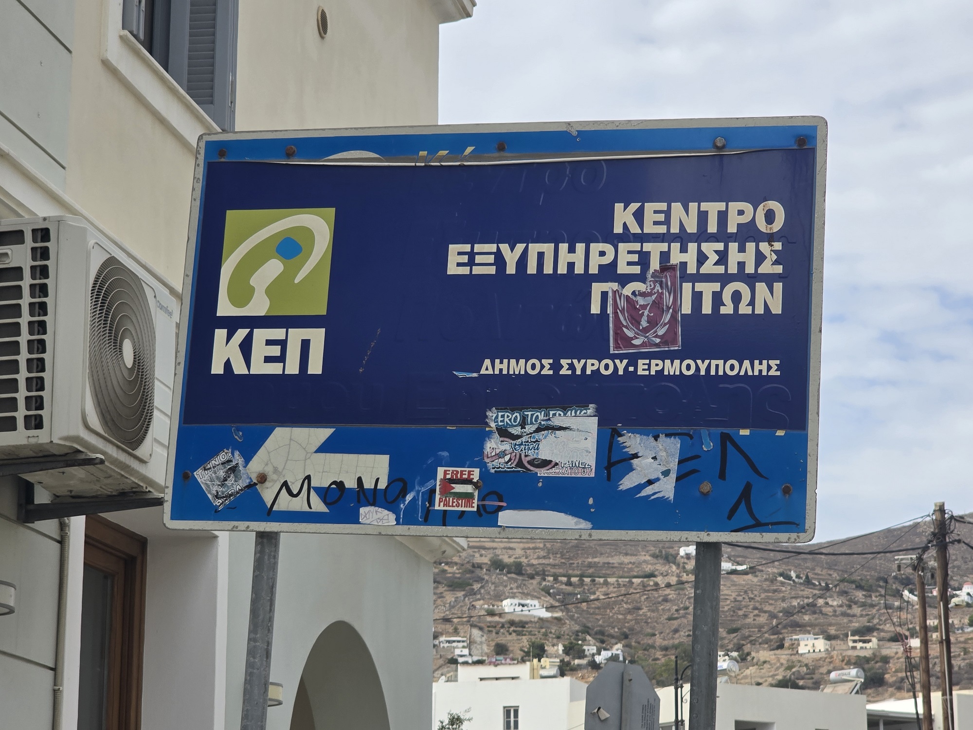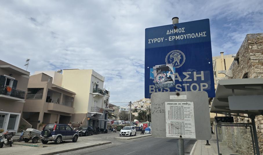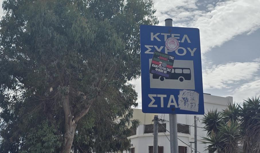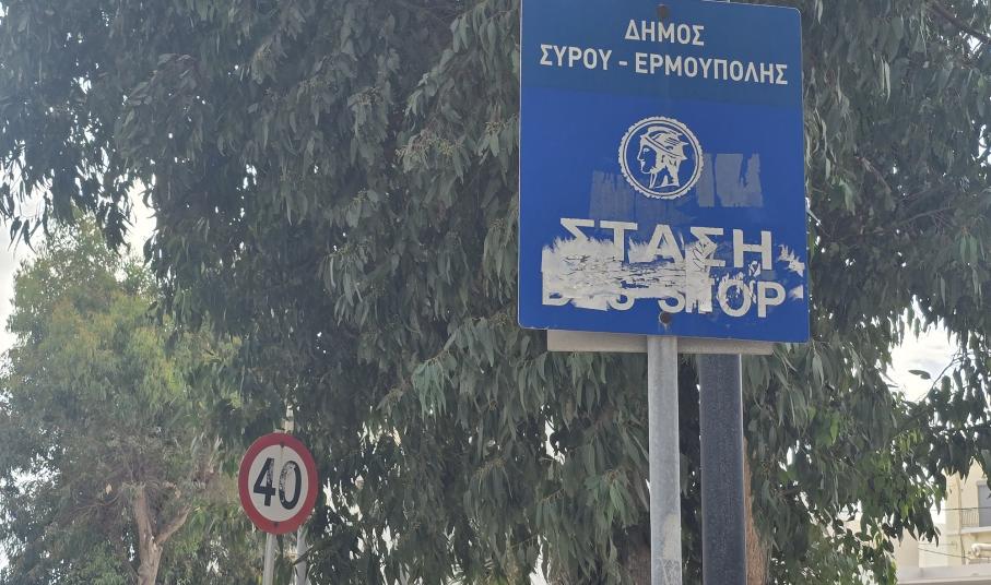 Με μία απλή βόλτα σε κάποιους από τους δρόμους της Ερμούπολης, είναι εύκολο να αντιληφθεί κανείς πως οι περισσότερες πινακίδες του Κώδικα Οδικής Κυκλοφορίας, αποτελούν πεδίο έκφρασης οπαδικών προτιμήσεων.