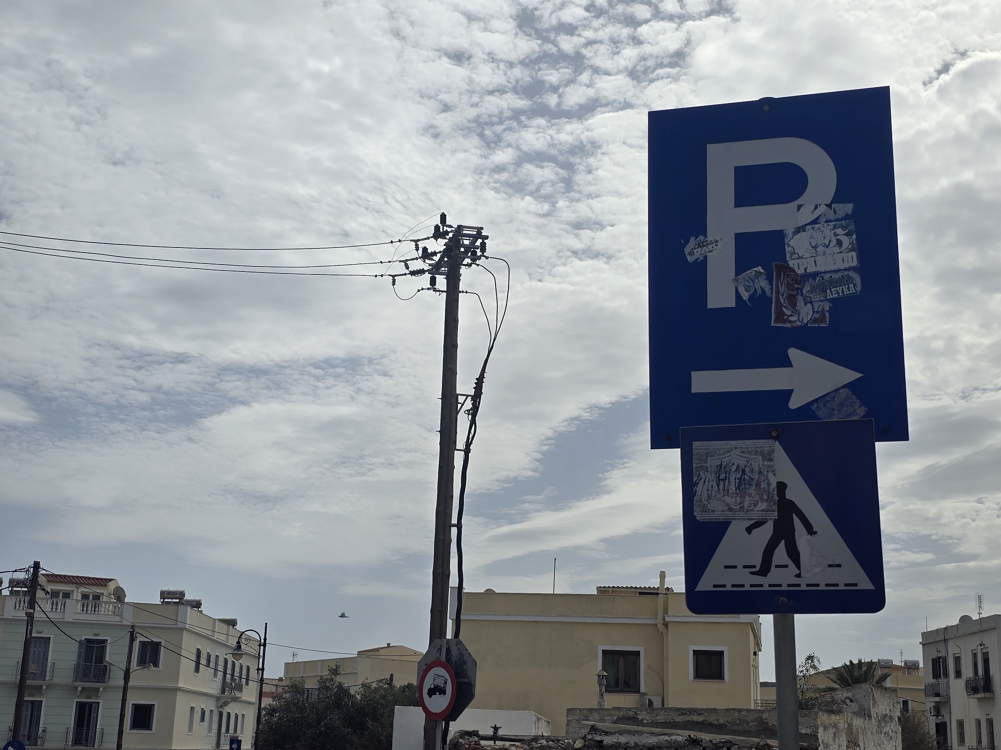 Συγκεκριμένα, στον δρόμο της Λαλακιάς, από το ύψος του Κ.Ε.Π. και μέχρι τη γέφυρα, δεν υπάρχει ούτε μία πινακίδα που να μην είναι γεμάτη από αυτοκόλλητα, συνθήματα με σπρέι και κάθε άλλου είδους μήνυμα.