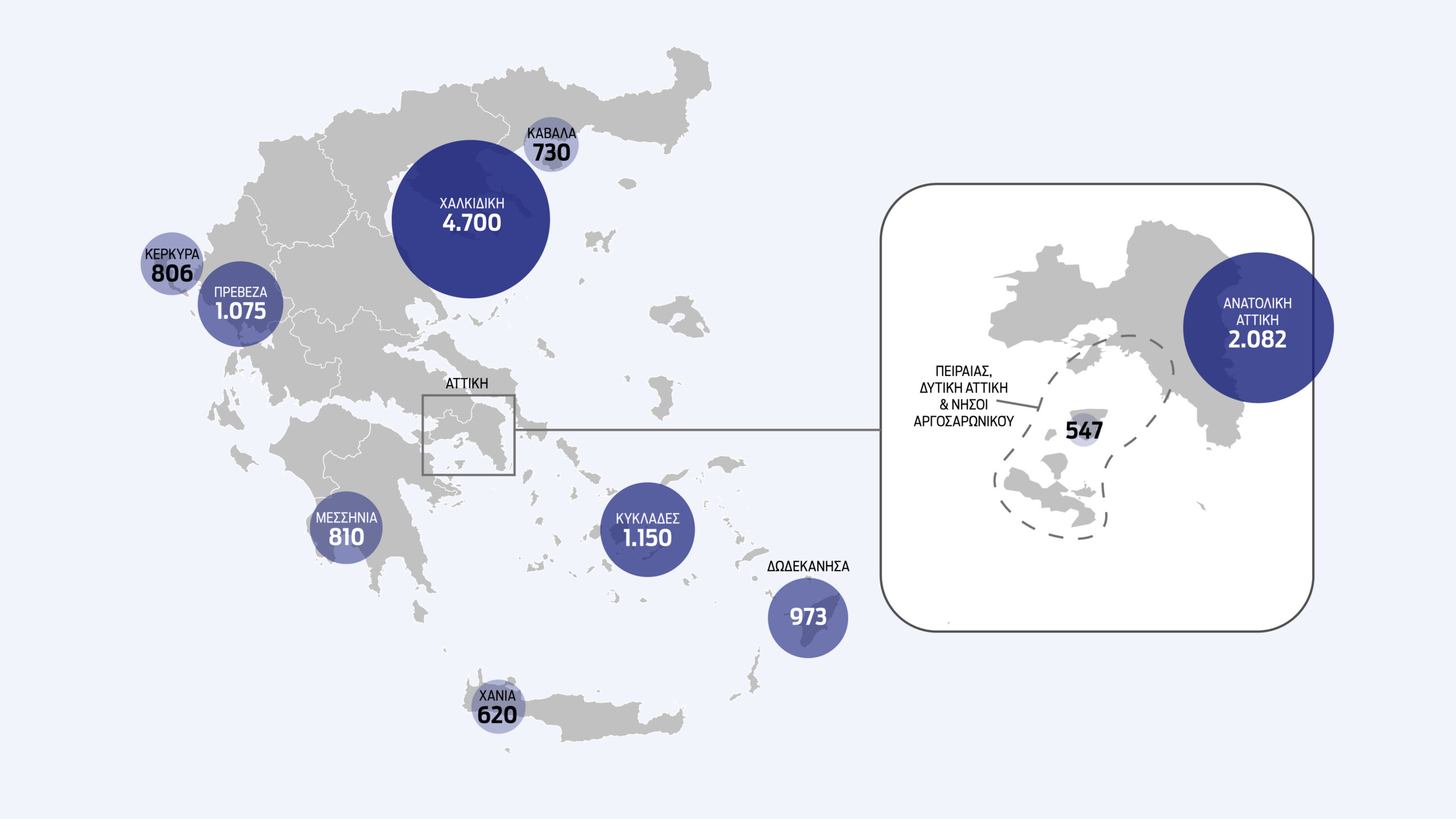 Σε ό,τι αφορά τις περισσότερες από 1.000 καταγγελίες που εξετάστηκαν στις Κυκλάδες, πραγματοποιήθηκαν αυτοψίες σε Μύκονο, Πάρο, Θήρα, Νάξο, Τήνο και Ανδρο σε συνεργασία με τους αντίστοιχους Δήμους.