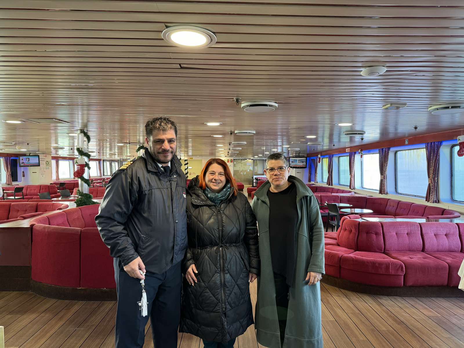 Συγκεκριμένα, η γενική γραμματέας, Λουκία Κολλάρου Λουκία και η ταμίας, Κολλάρου Πετρίνα που εκπροσώπησαν το Διοικητικό Συμβούλιο του Συλλόγου και πρόσφεραν στον καπετάνιο, Ιωάννη Συρίγο, στους αξιωματικούς και στο πλήρωμα ένα γούρι και γλυκά.