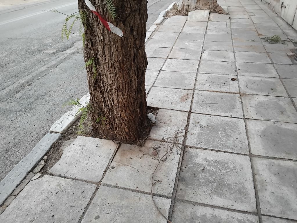 Σοβαρό κίνδυνο αποτελούν τα φθαρμένα πεζοδρόμια, καθώς και οι φουσκωμένες πλάκες λόγω των ριζών των δέντρων