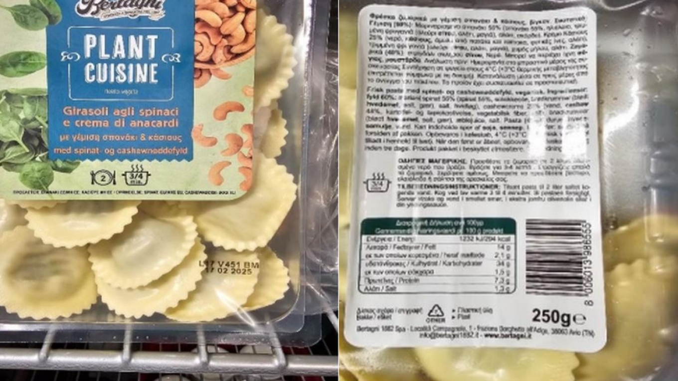 Τα φρέσκα ζυμαρικά με γέμιση σπανάκι και κάσιους με εμπορική ονομασία «Bertagni Plant Cuisine» με ημερομηνίες ανάλωσης, στις οποίες διαπιστώθηκε το πρόβλημα είναι:17/2/25, 27/2/25, και 11/03/25.