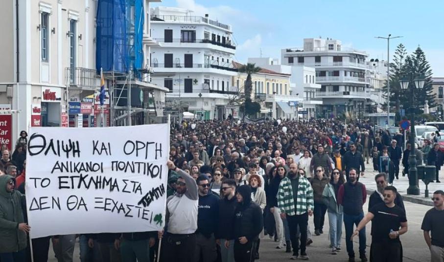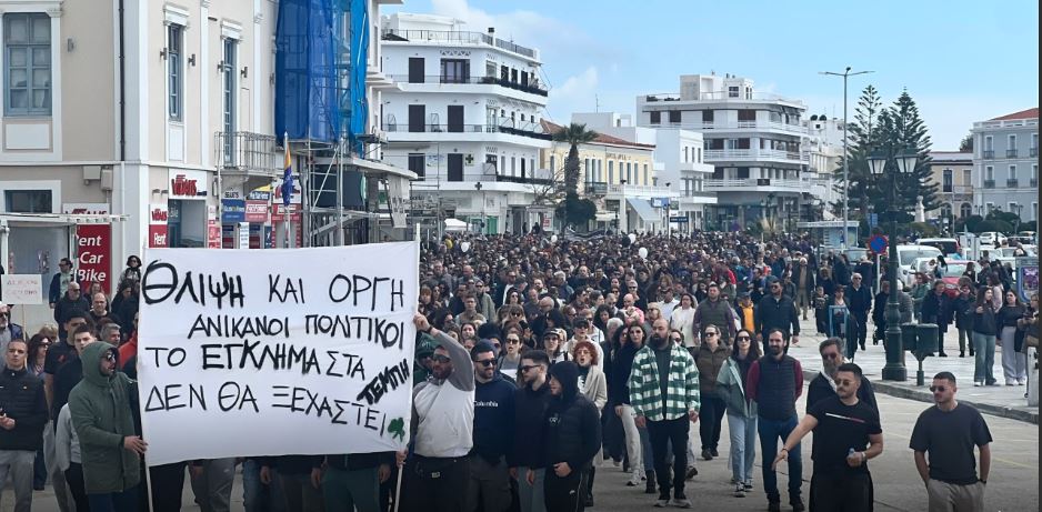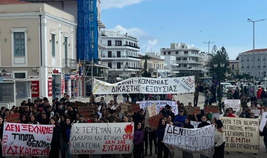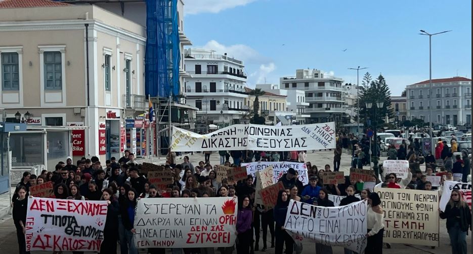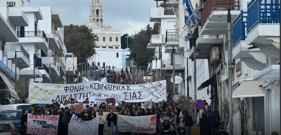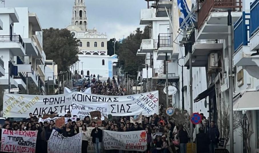 Πραγματοποιήθηκε και στην Τήνο σήμερα συγκέντρωση και πορεία για την επέτειο των δύο χρόνων από την τραγωδία των Τεμπών.