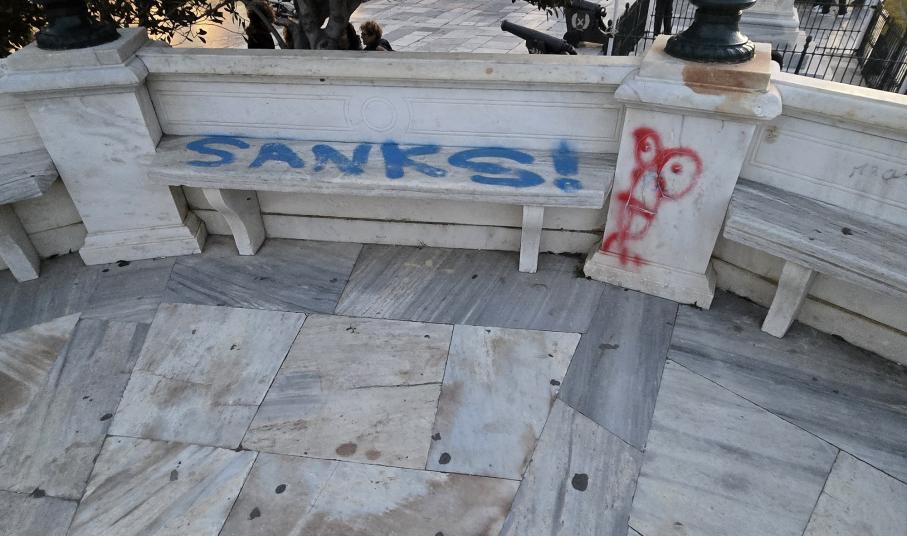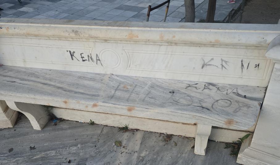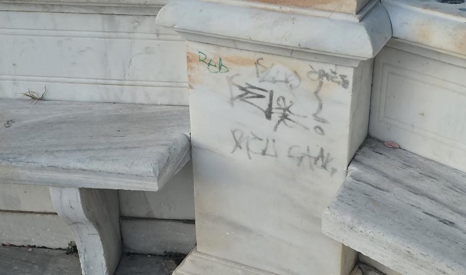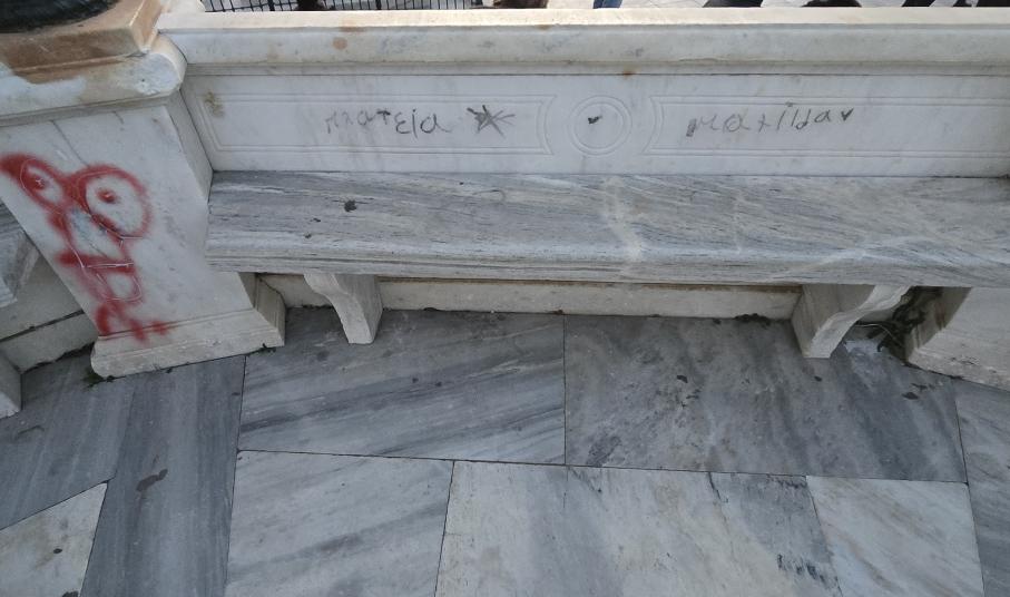 Στη Σύρο πλέον τα γκράφιτι και οι "μουτζούρες" στα δημόσια κτήρια και στα μνημεία της πόλης δεν έχουν τελειωμό.