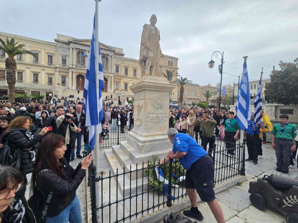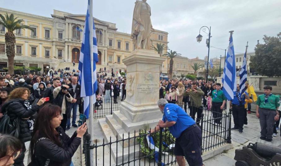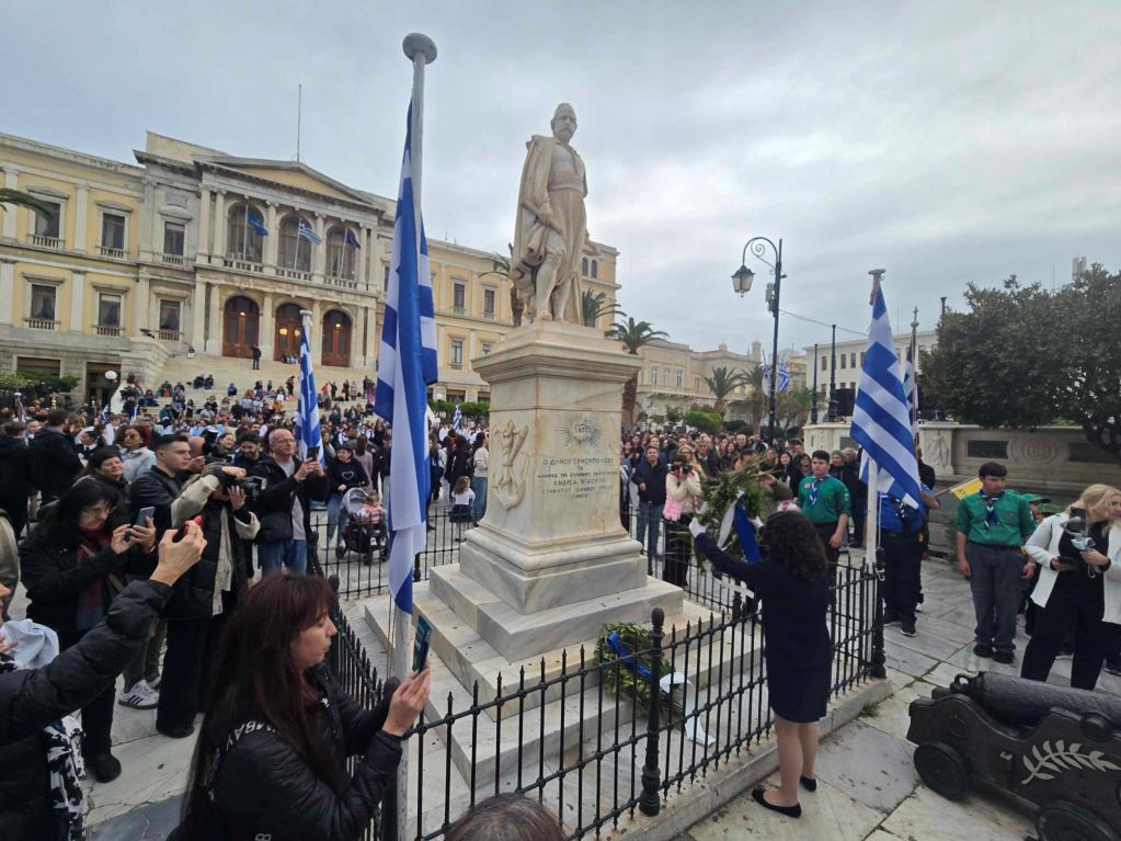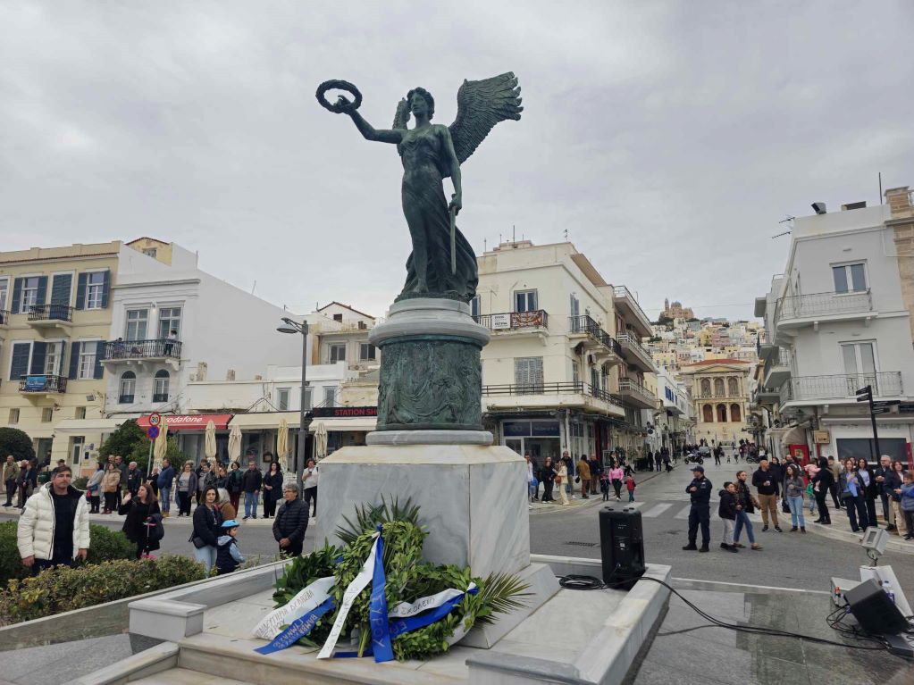 Νέοι και νέες κατάθεσαν στεφάνια στα μνημεία της Ερμούπολης, αποδίδοντας τιμή στον αγώνα των προγόνων μας για ανεξαρτησία και ελευθερία.
