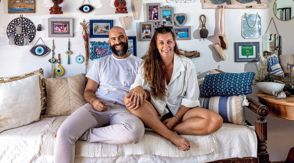 Η δημιουργία μιας φιλόξενης ατμόσφαιρας είναι το βασικό μέλημα και της Τερεζντίνα Ριγκούζο και του Ανδρέα Αμπουλού, που διατηρούν ένα μικρό κατάλυμα πολυτελείας στο Κίνι, εννιά χιλιόμετρα έξω από την Ερμούπολη. Για την Τερεζντίνα, το μέρος αυτό συνδέεται με την καταγωγή του προπάππου της, ο οποίος ήταν πρόξενος της Γαλλίας και του Βελγίου. Οι γονείς της και η ίδια μεγάλωσαν στην Αθήνα, με την επιθυμία να επιστρέψουν κάποια στιγμή στο νησί, όπως και έγινε. Αρκετά από τα αντικείμενα στα δωμάτια και στους κοινόχρηστους χώρους υπενθυμίζουν διακριτικά τη ζωή της οικογένειας στην πρωτεύουσα: από τις φερ φορζέ πολυθρόνες που ήρθαν εδώ από το μπαλκόνι του αθηναϊκού διαμερίσματος μέχρι την επιγραφή του εμπορικού καταστήματος που διατηρούσε ο παππούς της στο κέντρο. Τη ζωή στη μεγαλούπολη τη θυμούνται και όταν ακούν στο ραδιόφωνο για την κίνηση στους δρόμους της Αθήνας, χωρίς, βεβαίως, να τη νοσταλγούν στο ελάχιστο. Όπως λέει χαρακτηριστικά ο Ανδρέας, είναι πολυτέλεια να ξυπνάς σε ένα νησί και να ακούς το κύμα της θάλασσας. Και την πολυτέλεια αυτή τη διαφυλάσσεις όσο δεν τη θεωρείς δεδομένη.