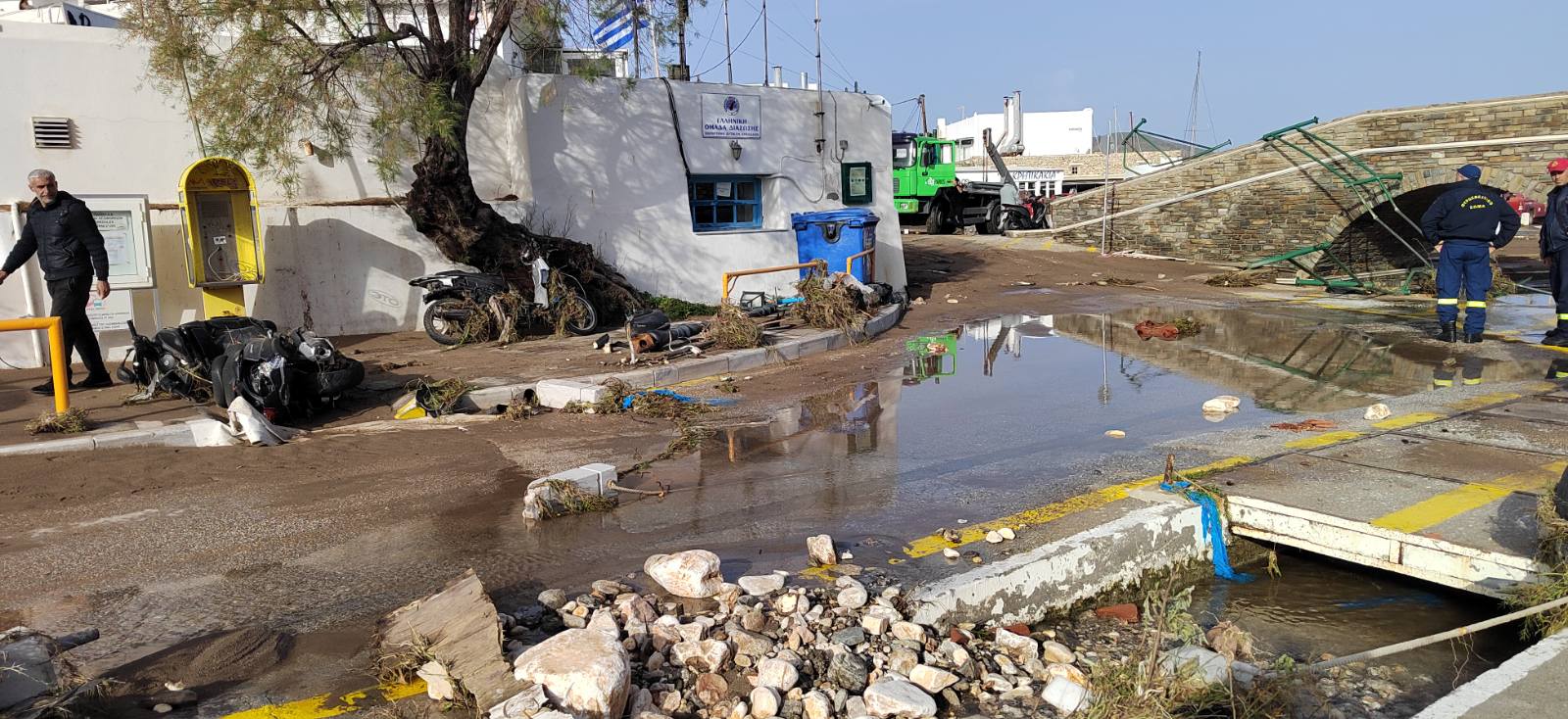 Χαρακτηριστικά, τόνισε πως "η θεομηνία της Δευτέρας που έπληξε τη Μύκονο ήταν πρωτοφανής σε ένταση και διάρκεια, προκαλώντας σημαντικά προβλήματα και ζημιές σε υποδομές, οδικό δίκτυο, κατοικίες και καταστήματα. Παρά τις δύσκολες συνθήκες, το πιο σημαντικό είναι ότι δεν θρηνήσαμε ανθρώπινες απώλειες. Η Πολιτική Προστασία του Δήμου Μυκόνου, σε συνεργασία με τη ΔΕΥΑΜ, την Πυροσβεστική Υπηρεσία, την Υποδιεύθυνση της Αστυνομίας, την Περιφέρεια Νοτίου Αιγαίου και όλες τις αρμόδιες υπηρεσίες του Δήμου, βρισκόταν σε πλήρη επιφυλακή, έχοντας προνοήσει για την αντιμετώπιση ακραίων καιρικών φαινομένων. Όλες οι κλήσεις πολιτών απαντήθηκαν άμεσα και οι ομάδες επέμβασης βρέθηκαν στα σημεία των προβλημάτων προκειμένου να αποκαταστήσουν την κυκλοφορία σε πληγείσες οδούς και να προχωρήσουν σε αντλήσεις υδάτων από υπόγεια, κατοικίες και επαγγελματικούς χώρους με την συμβολή των κλιμακίων των Πυροσβεστικών Υπηρεσιών Ανδρου, Τήνου και Σύρου".