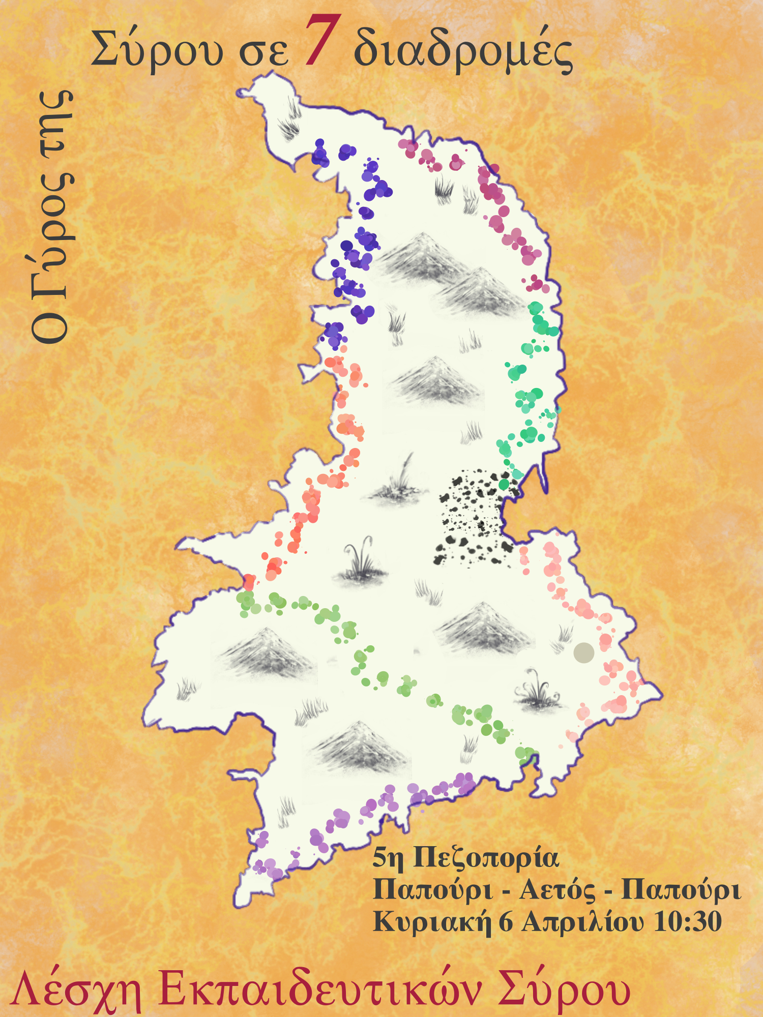 Οι βορεινές παραλίες ξετυλίγονται μπροστά μας. Την Κυριακή 6 Απρίλη να περπατήσουμε από το Παπούρι στον Αετό. Συνολική πεζοπορική διάρκεια διαδρομής 2:30 ώρες. Με μια γερή στάση στην παραλία του Αετού για να την απολαύσουμε. Θα χρειαστούμε συνολικά 3:30 ώρες. Αυτό ανάγει την διαδρομή μας στο πιο άγριο κομμάτι της Σύρου, σε μονοήμερη εκδρομή. Απαραίτητα αρκετό νερό, καπέλο και μαγιό.. Όπως και στις προηγούμενες βόλτες μας έχουμε μια σύντομη ξενάγηση στο Παπούρι στις 10:30 από τον Αχιλλέα, έναρξη στις 11:00, λήξη 14:30. Ο χάρτης της διαδρομής https://www.google.com/maps/d/edit?mid=1UnGpcA2Y5zN4dn0DOfrAU27FPiBzUdg&usp=sharing
