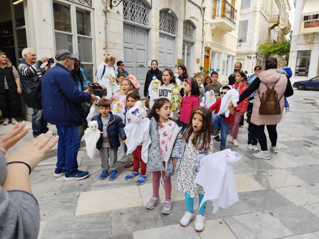 Αυτό έπραξαν τα παιδιά από το παιδικό και εφηβικό τμήμα του Παραδοσιακού Εργαστηρίου Σύρου "Άρωμα Παράδοσης", όπου κρατώντας λαζαράκια στα χέρια τους, σκόρπισαν την παράδοση στους δρόμους του κέντρου.