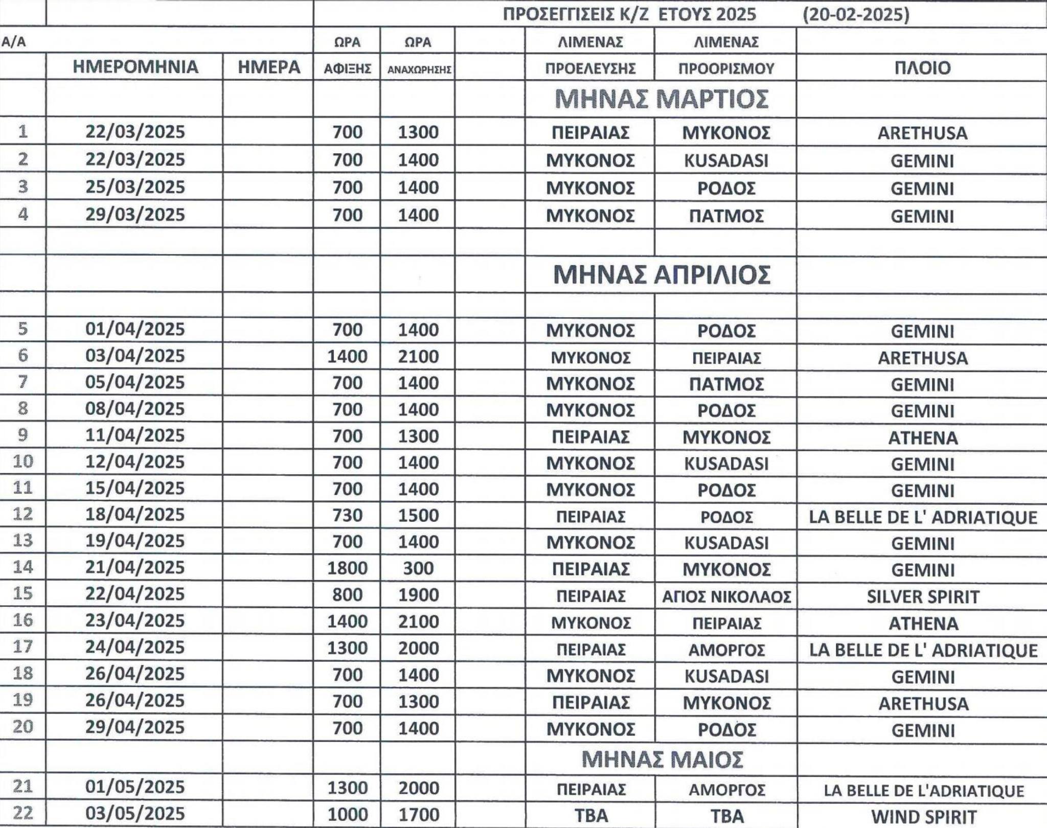 - Το Σάββατο 26 Απριλίου, σύμφωνα με το πρόγραμμα, θα αφιχθούν δύο κρουαζιερόπλοια και συγκεκριμένα το GEMINI και το ARETHUSA