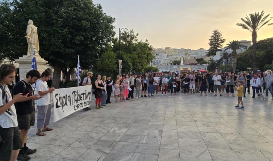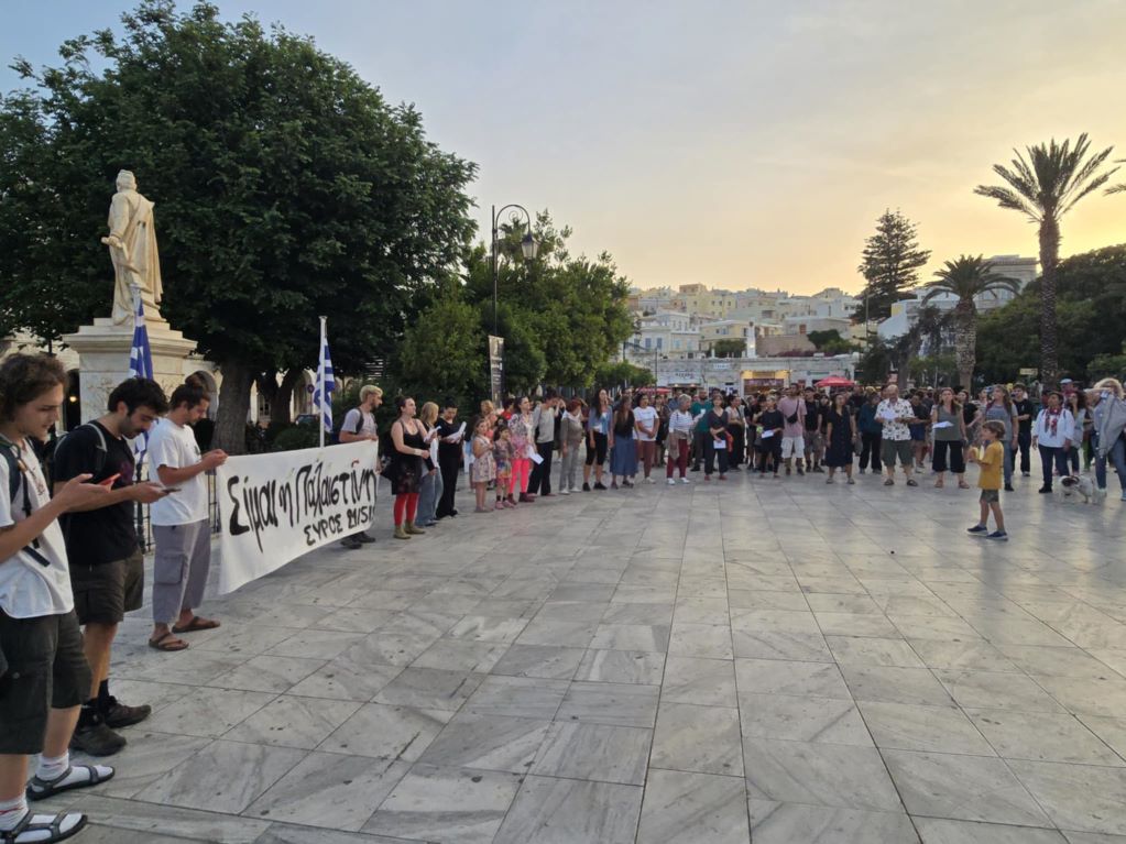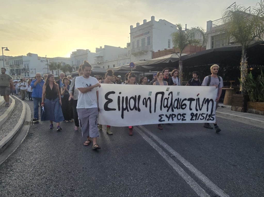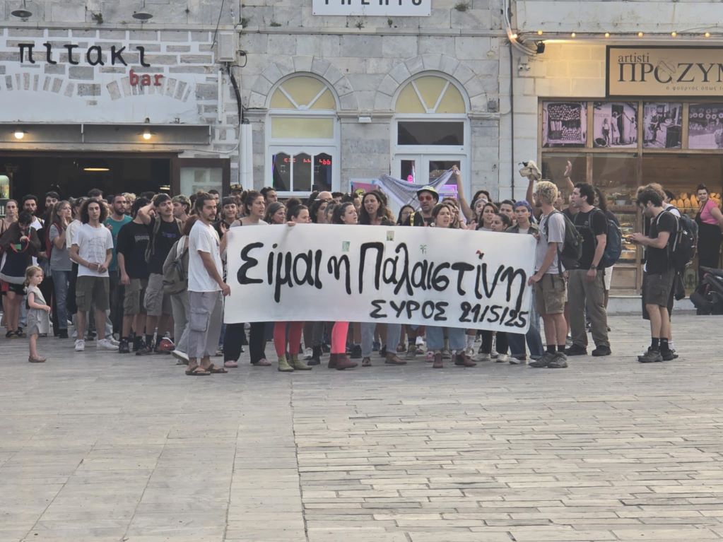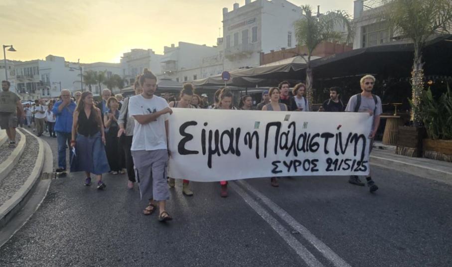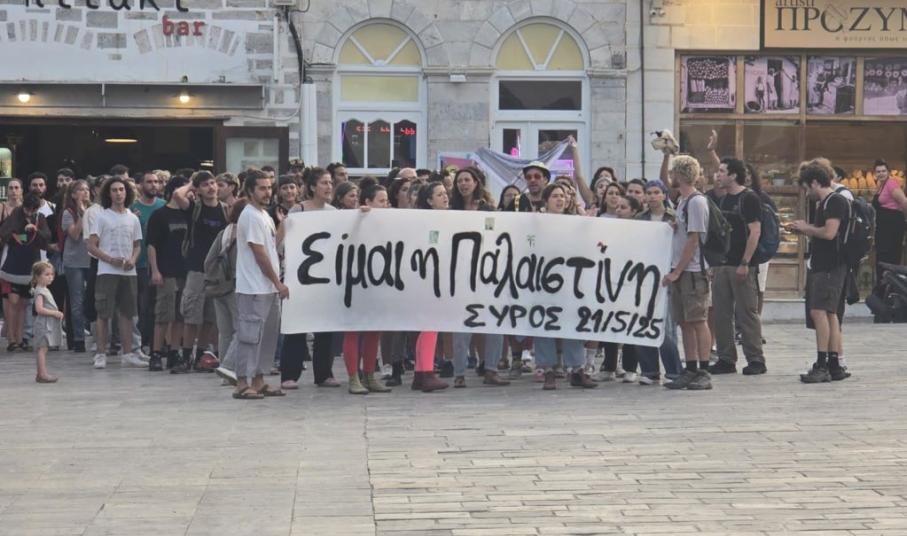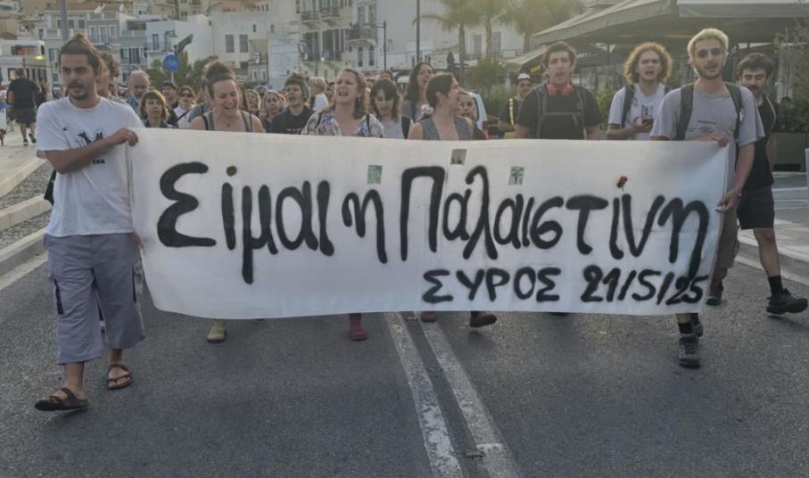 Κάτοικοι της Σύρου και φοιτητές, έδειξαν την αλληλεγγύη τους στον Παλαιστινιακό λαό, κρατώντας πανό που έγραφε "Είμαι η Παλαιστίνη" και με τραγούδια αφιερωμένα στον άμαχο πληθυσμό που βάλλεται από τη χερσαία επίθεση του Ισραήλ, αλλά και στα χιλιάδες παιδιά που χάθηκαν και που δυστυχώς θα χαθούν τις επόμενες ώρες από την ασιτία,.