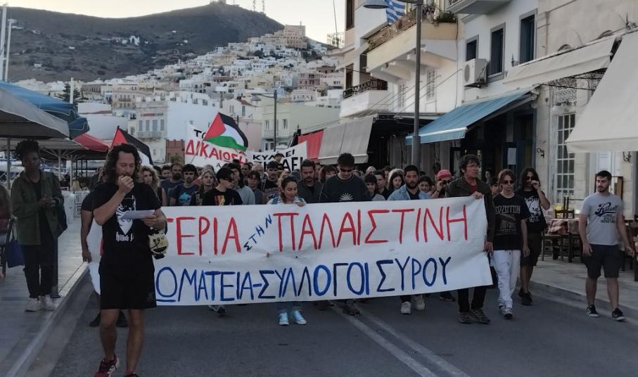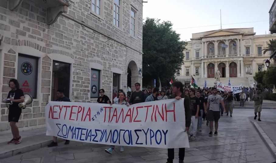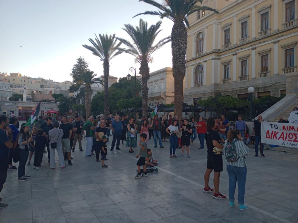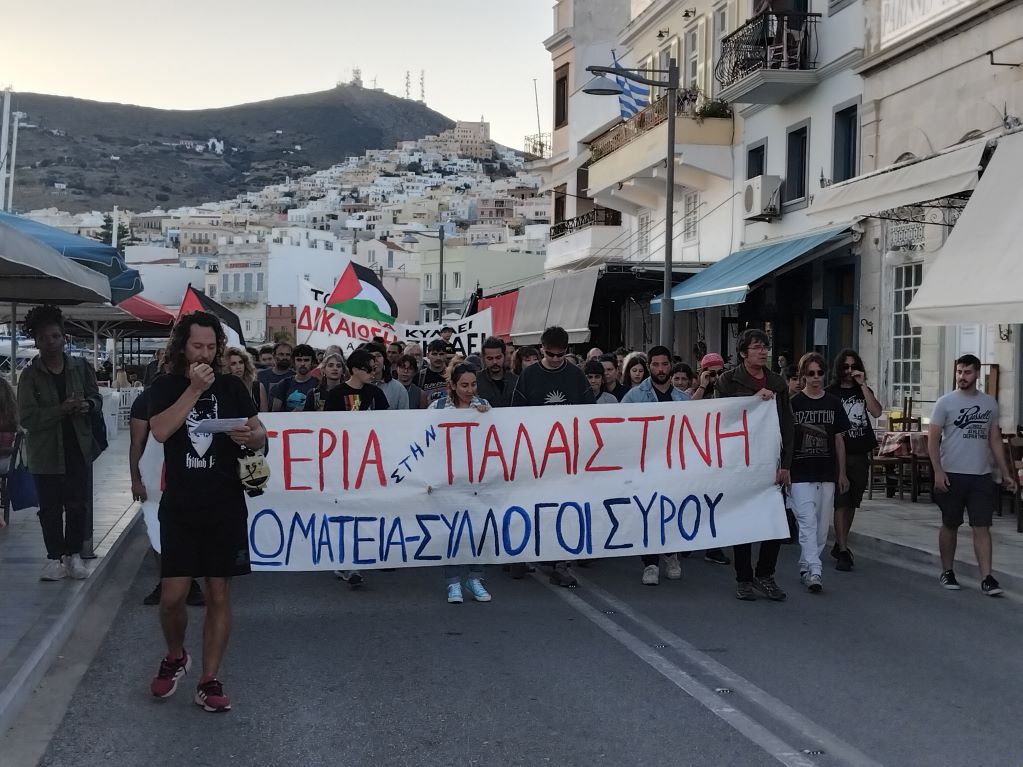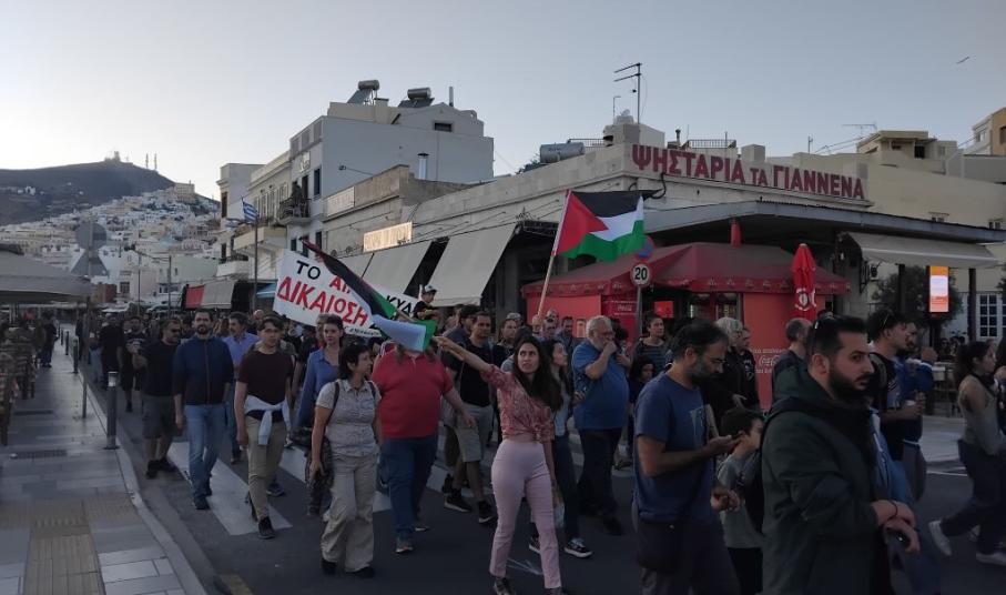 Με σύνθημα "Να σταματήσει τώρα η σφαγή του Παλαιστινιακού λαού", πραγματοποιήθηκε σήμερα το απόγευμα στη Σύρο και συγκεκριμένα στο κέντρο της Ερμούπολης, νέα κινητοποίηση υπέρ του άμαχου πληθυσμού της Γάζας.