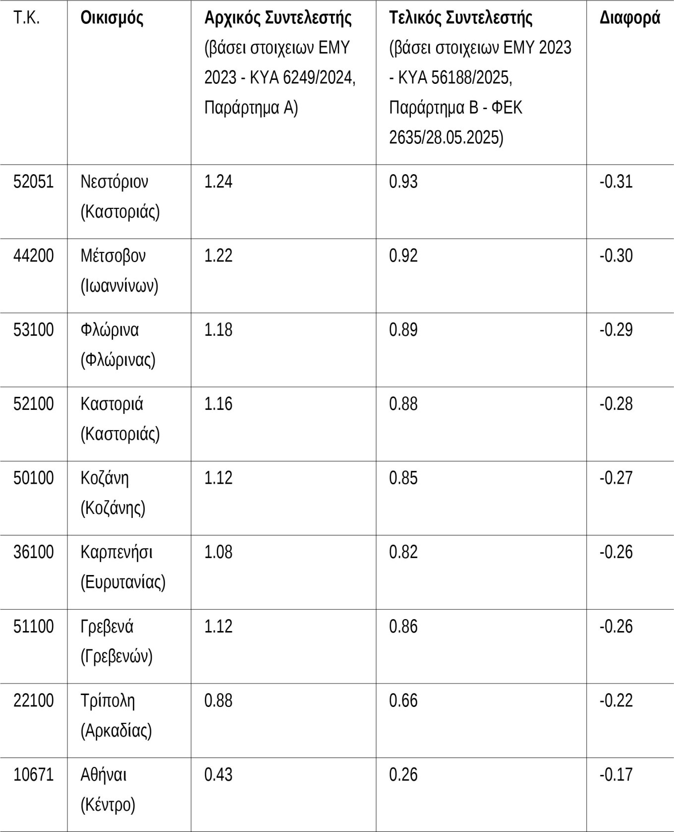 Η εκκαθάριση αυτή έγινε με βάση νέο πίνακα, που επιφέρει μεταβολές (προς τα πάνω ή προς τα κάτω) για κάθε περιοχή της Ελλάδος.