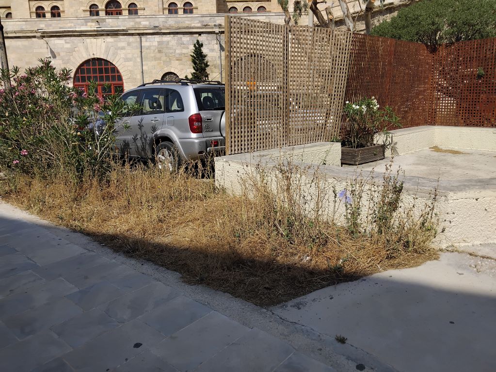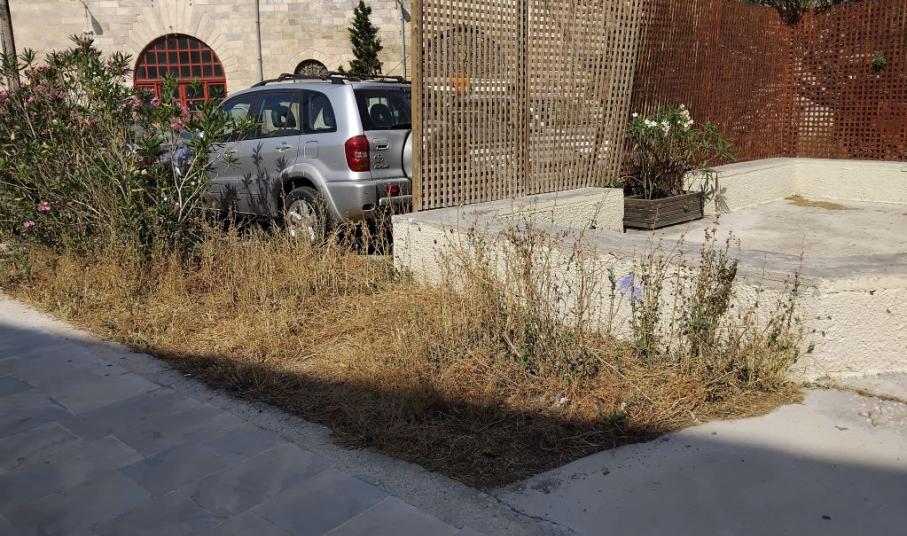 Ακαθάριστοι χώροι, ξερά χόρτα, ακαθαρσίες και έντονη δυσοσμία σε μία περιοχή που υπάρχει και ο εμβληματικός χώρος της Πινακοθήκης Κυκλάδων, ο οποίος φιλοξενεί τις μεγαλύτερες εκθέσεις των πολιτιστικών εκθέσεων για το φετινό καλοκαίρι.